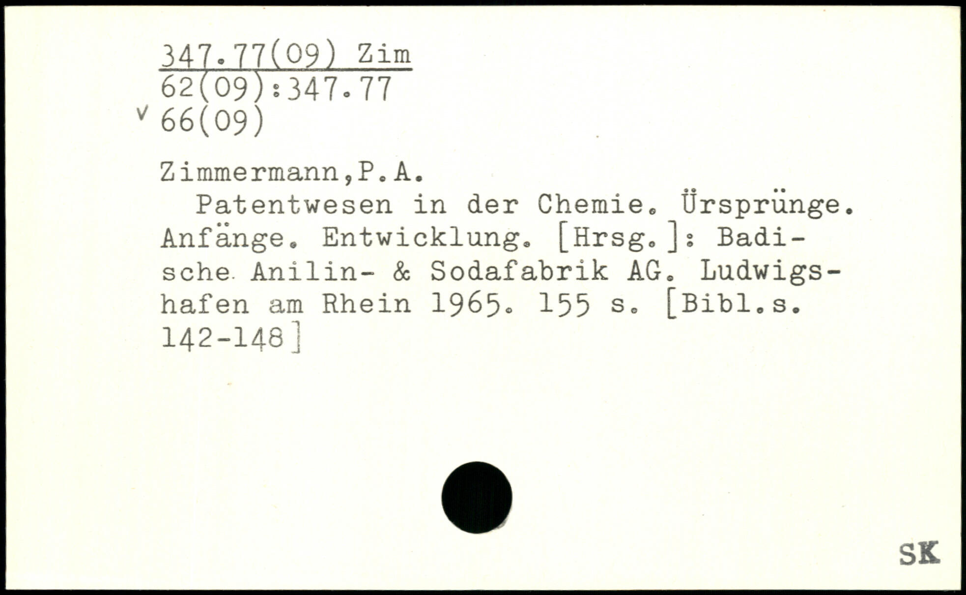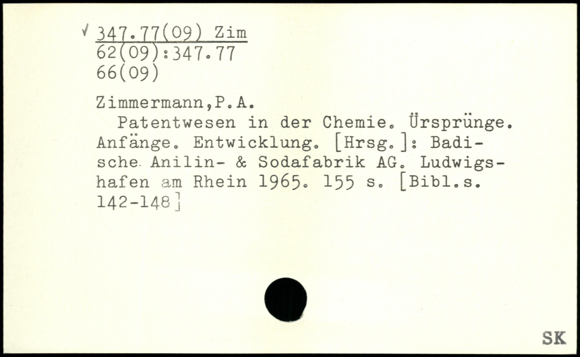Patentwesen in der Chemie. Ürsprünge. Anfänge. Entwicklung. [Hrsg.]s Badische. Anilin- & Sodafabrik AG. Ludwigshafen am Rhein 1965. -.-