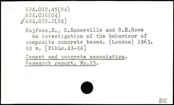 Kajfasz,S., G.Somerville and R.E.Rowe An investigation of the behaviour of composite concrete beams. (London) 1963.
