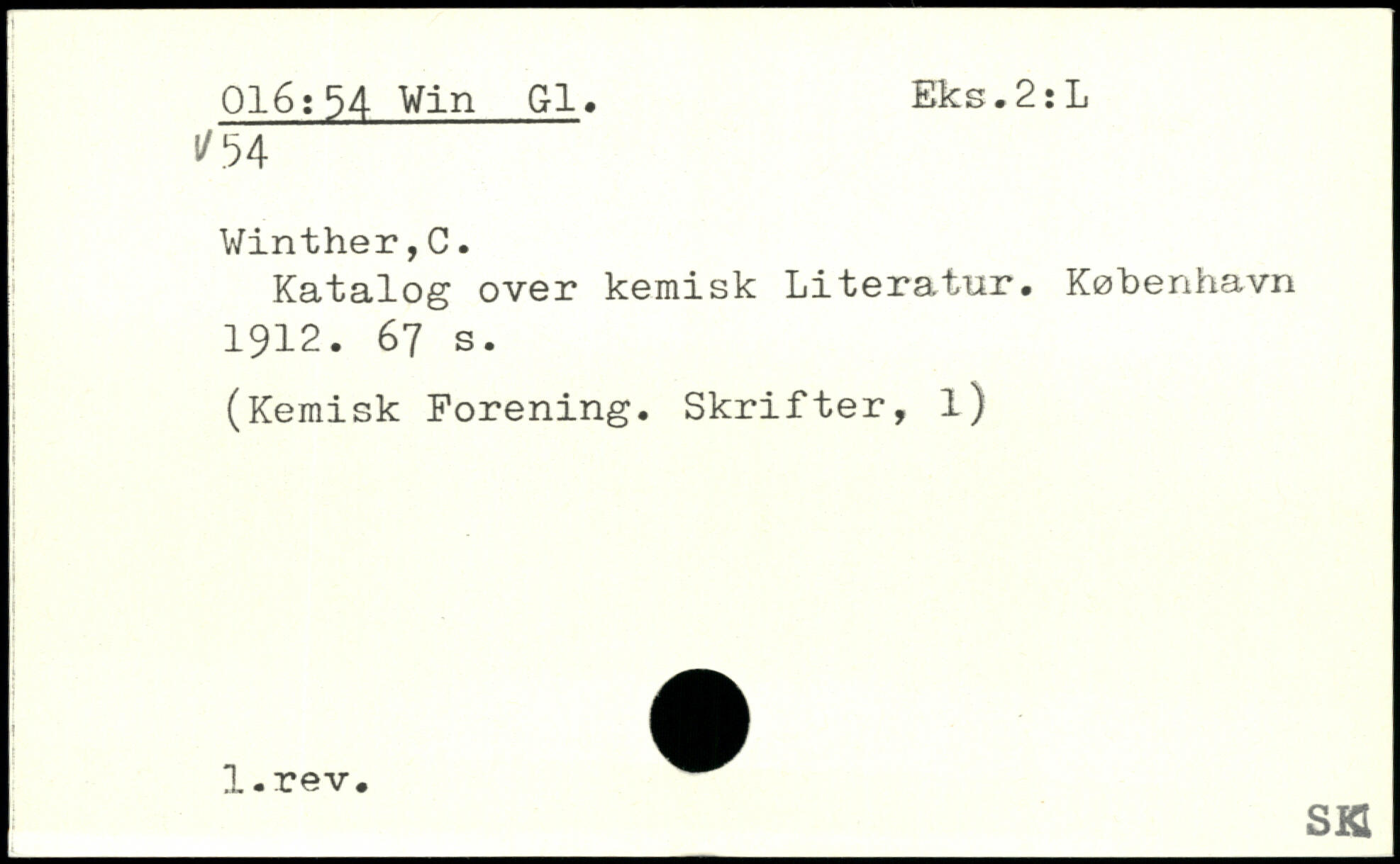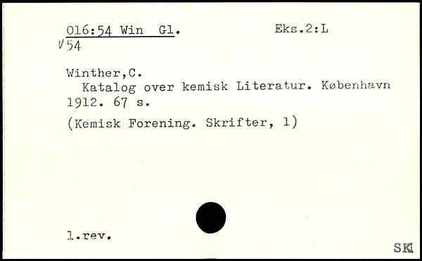 Katalog over kemisk Literatur.