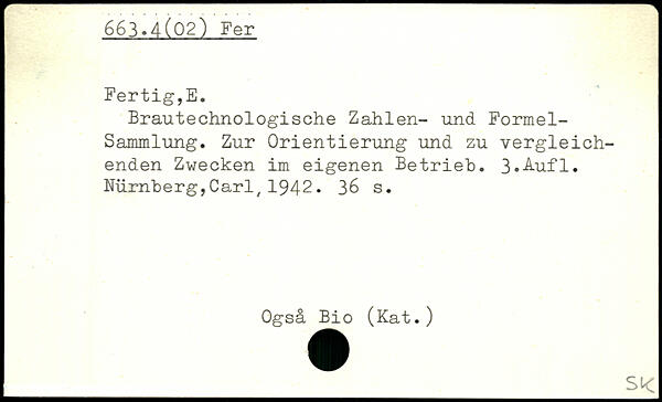 Brautechnologische Zahlen- und Formel-Sammlung. Zur Orientierung und zu vergleichenden Zwecken im eigenen Betrieb. 3,-4ufl.