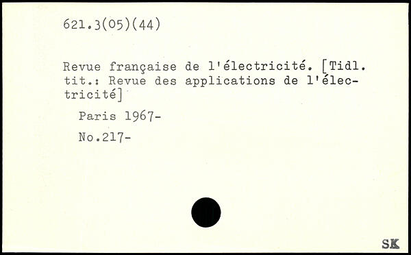 Revue française de l'électricité. [Tidl. tit.: Revue des applications de 1’électricité]