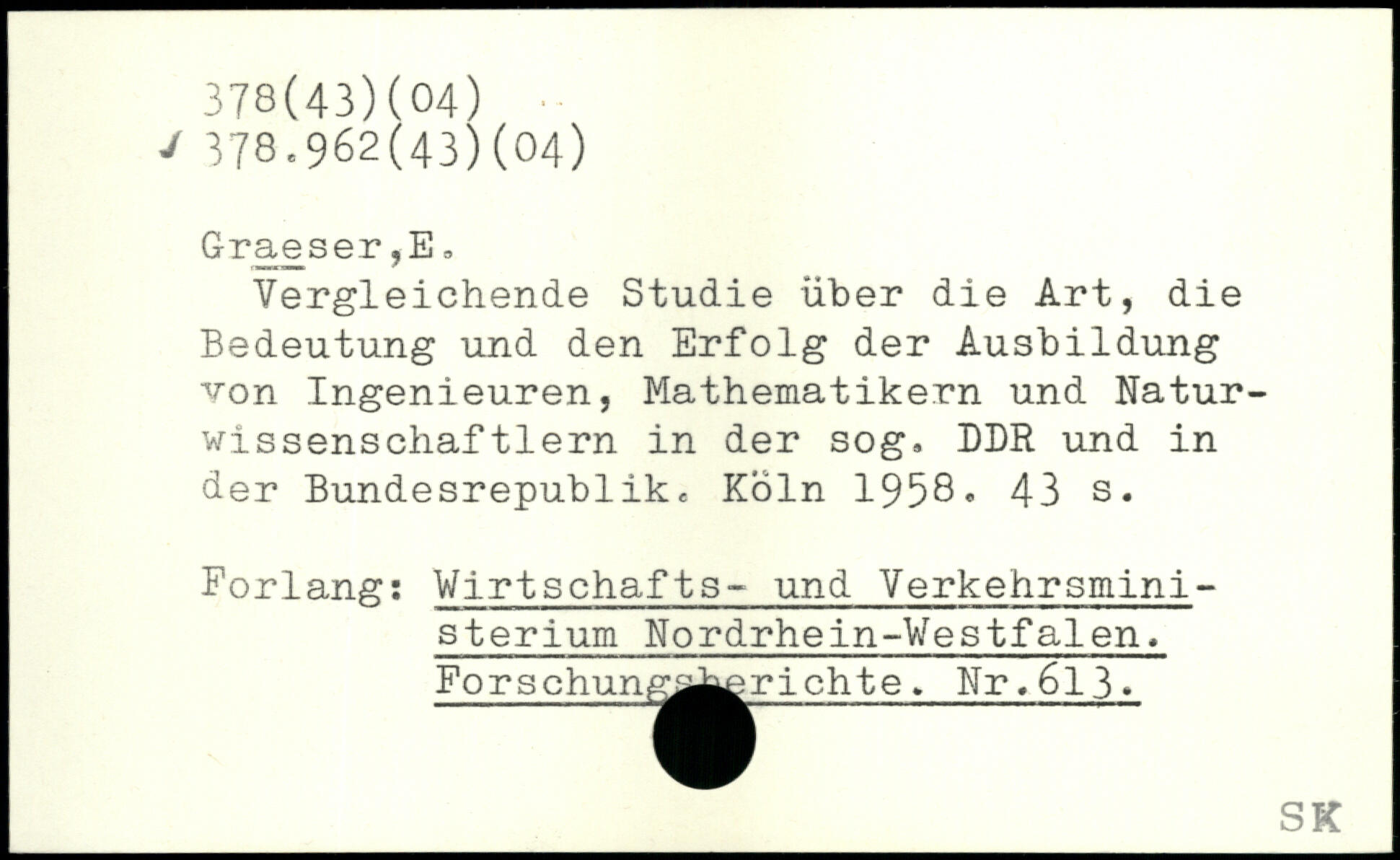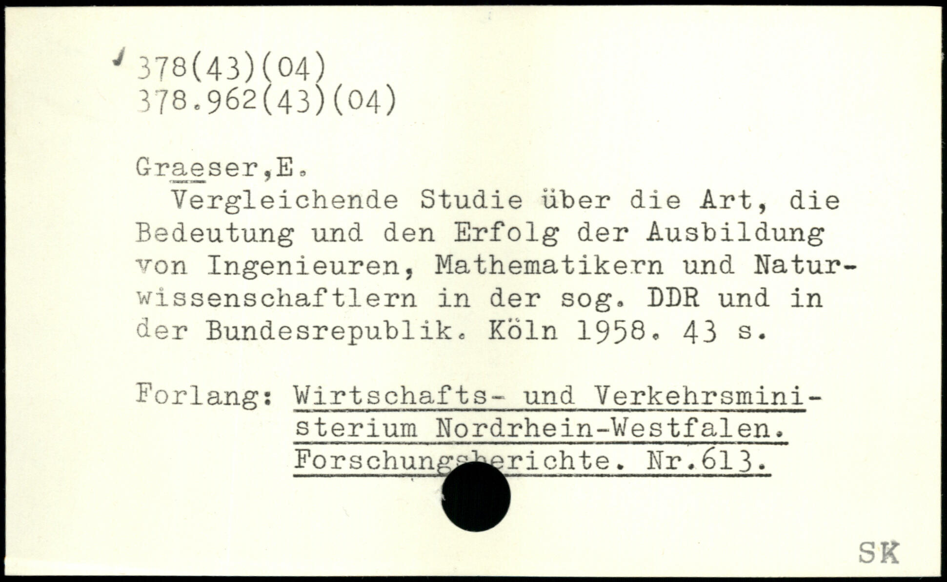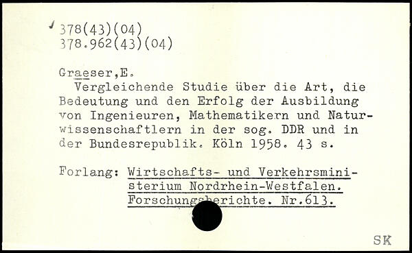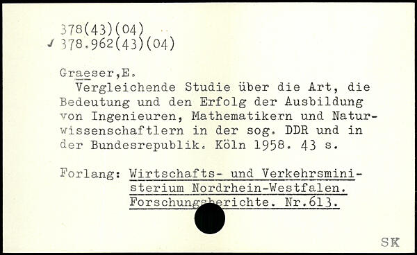 Vergleichende Studie über die Art, die Bedeutung und den Erfolg der Ausbildung von Ingenieuren, Mathematikern und Naturwissenschaftlern in der sog. DDR und in der Bundesrepublik.