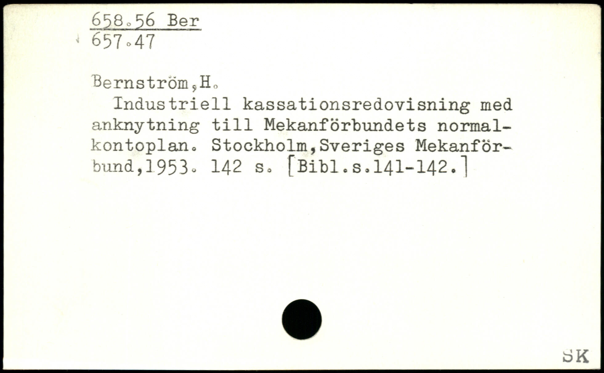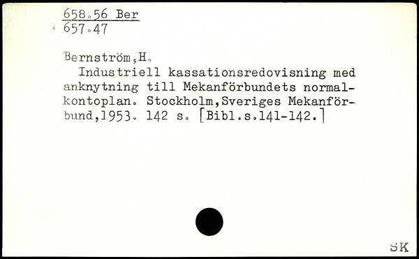 Bernström sHo Industriell kassationsredovisning med anknytning tili MekanfÖrbundets normal-kontoplan., Stockholm,Sveriges Mekanför-bund,]953<>
