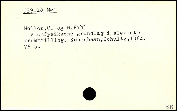 Atomfysikkens grundlag i elementær fremst1111ng. København,Schultz,19&4.