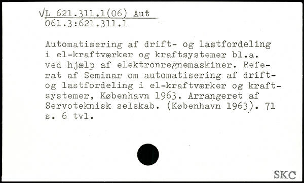 Automatisering af drift- og lastfordeling i el-kraftværker og kraftsystemer bl.a. ved hjælp af elektronregnemaskiner. Referat af Seminar om automatisering af drift-og lastfordeling i el-kraftværker og kraftsystemer