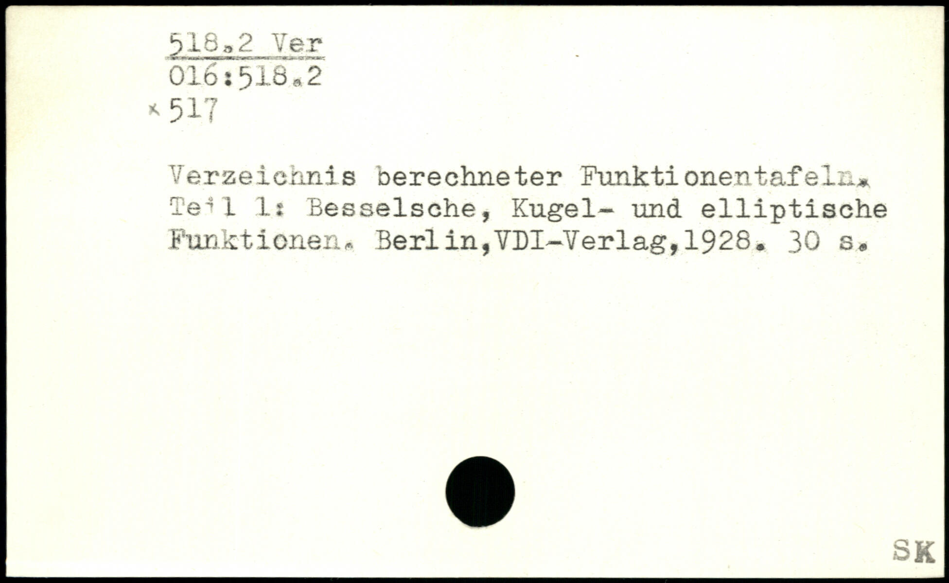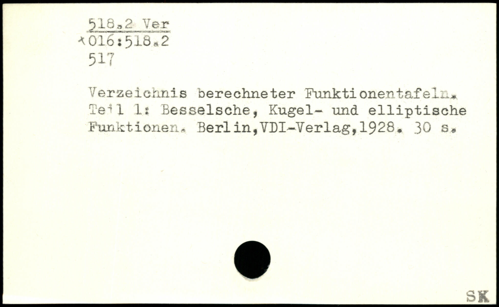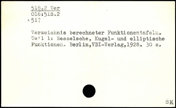 Verzeichnis berechneter Funktionentafeln. Tel 1 1: Besselsche, Kugel- und elliptische Funktionen, Berlin,VDI—Verlag,1928.