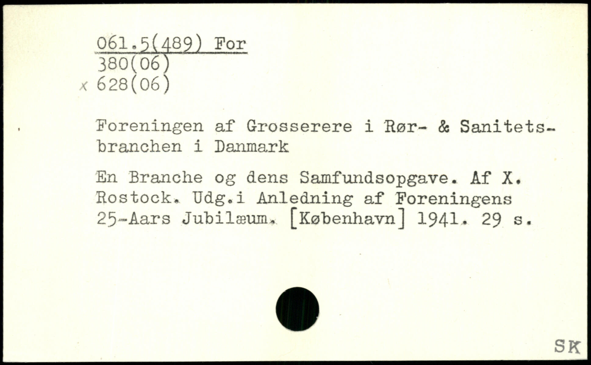 . Foreningen af Grosserere i Rør- & Sanitets branchen i Danmark En Branche og dens Samfundsopgave. Af X, Rostock, Udg.i Anledning af Foreningens 25-Aars Jubilæum