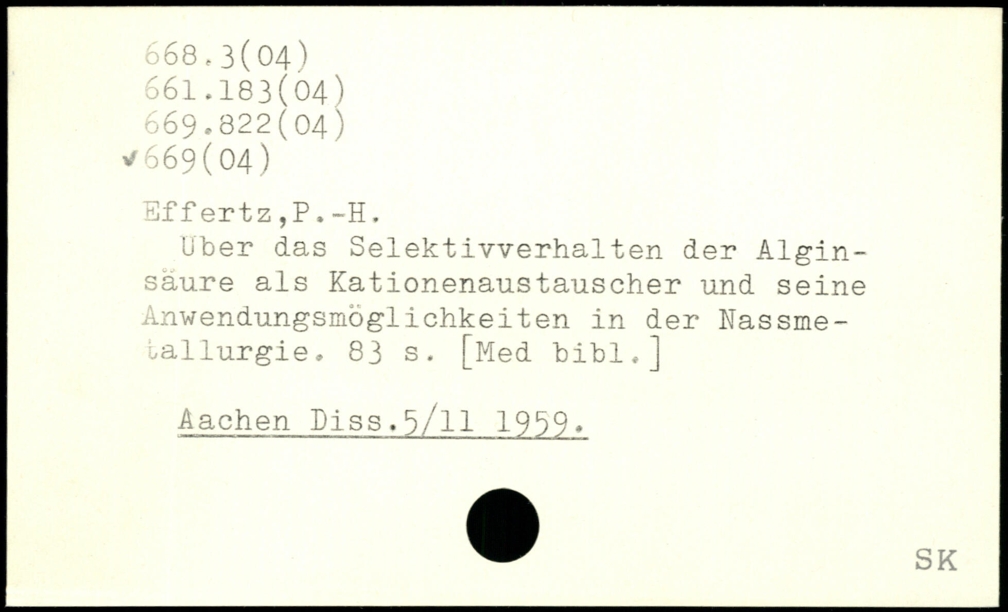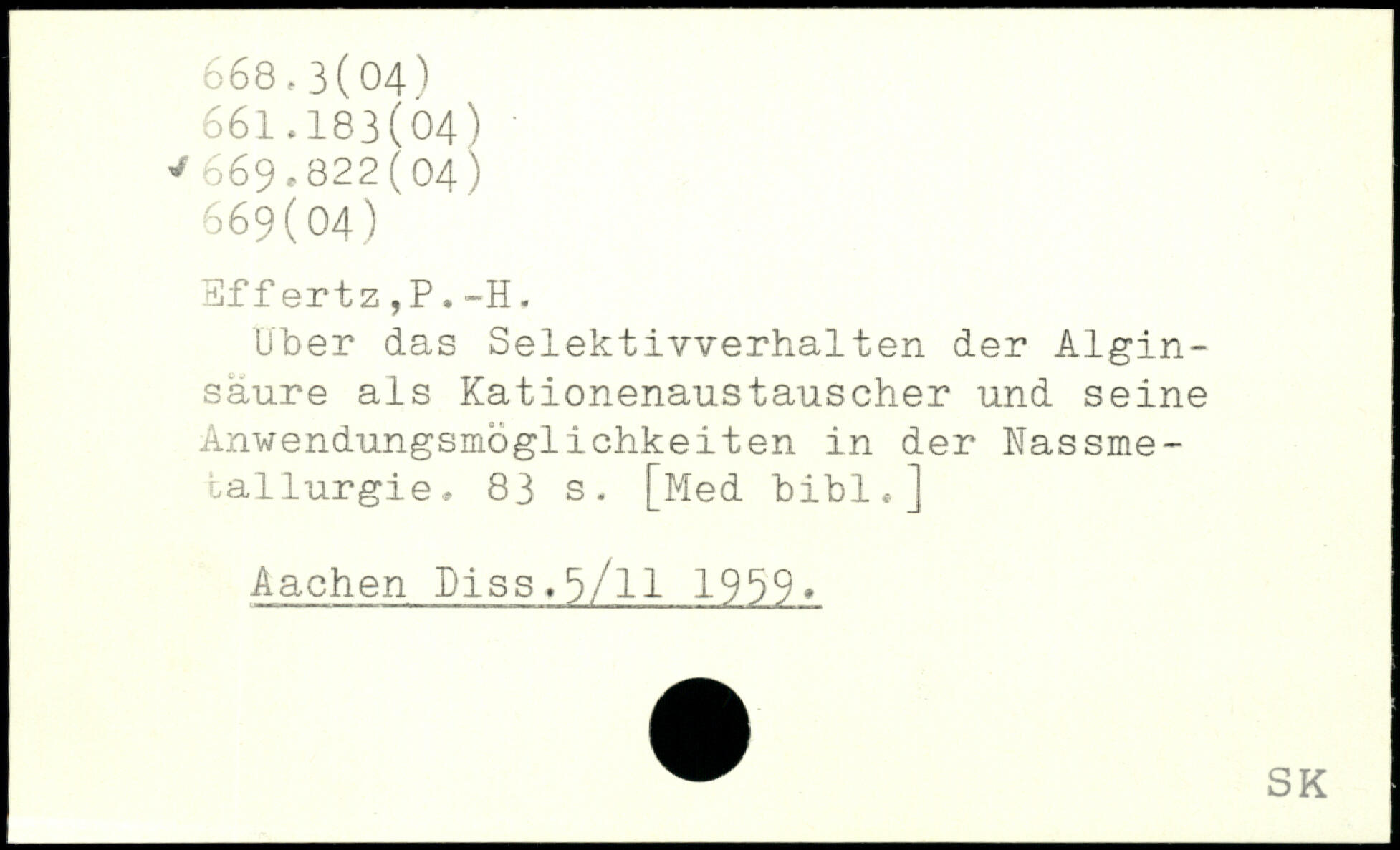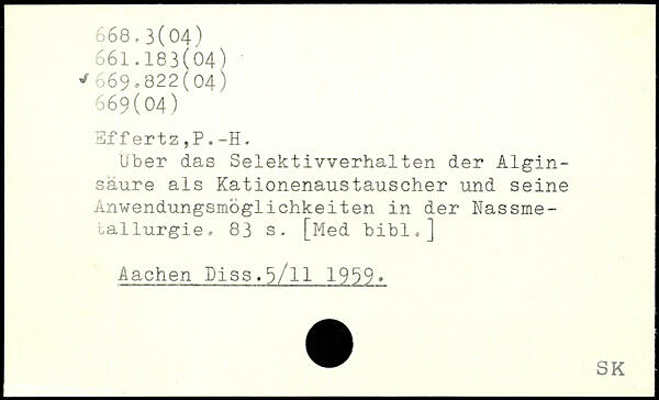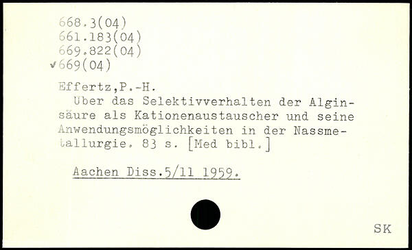 Über das Selektivverhalten der Algin-saure als Kationenaustauscher und seine Anwendungsmöglichkeiten in der Nassmetallurgie.
