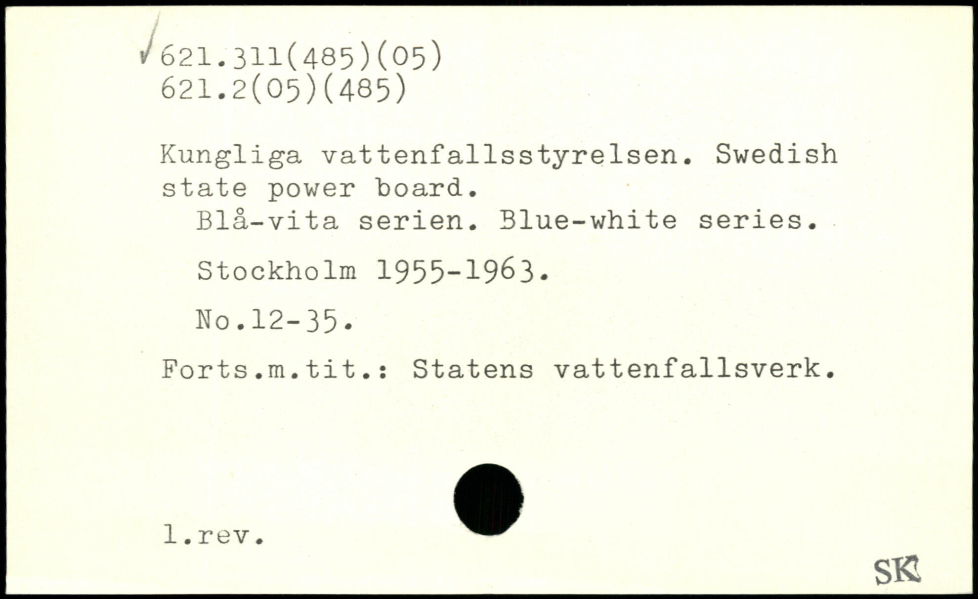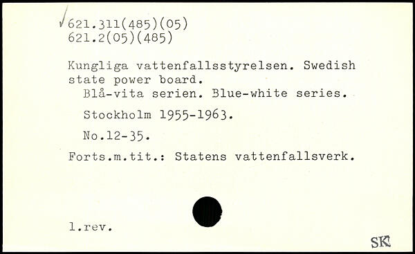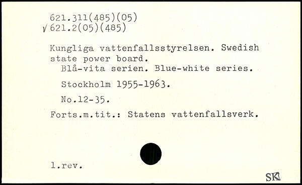 Kungliga vattenfallsstyrelsen. Swedish state power board. Blå-vita serien. Blue-white series.