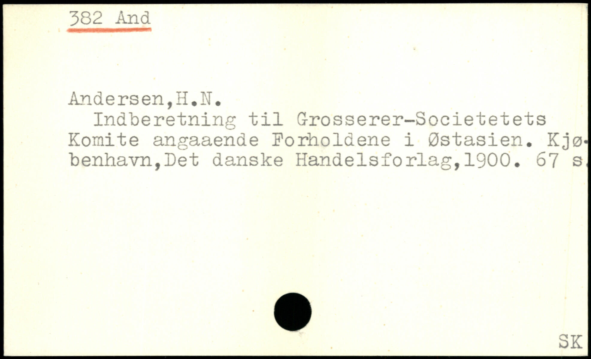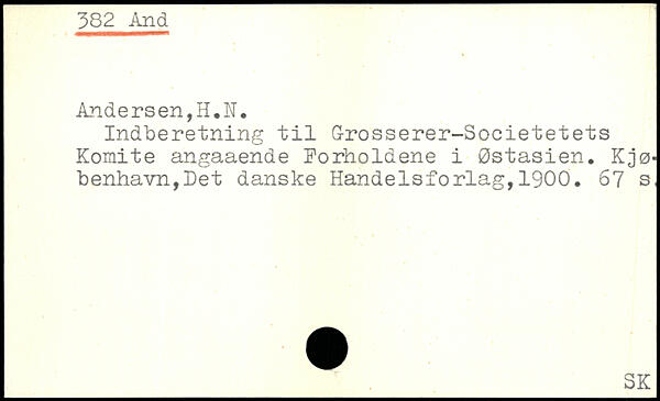 Indberetning til Grosserer-Societetets Komite angaaende Forholdene i Østasien. Kjø, benhavn,Det danske Handelsforlag,1900.