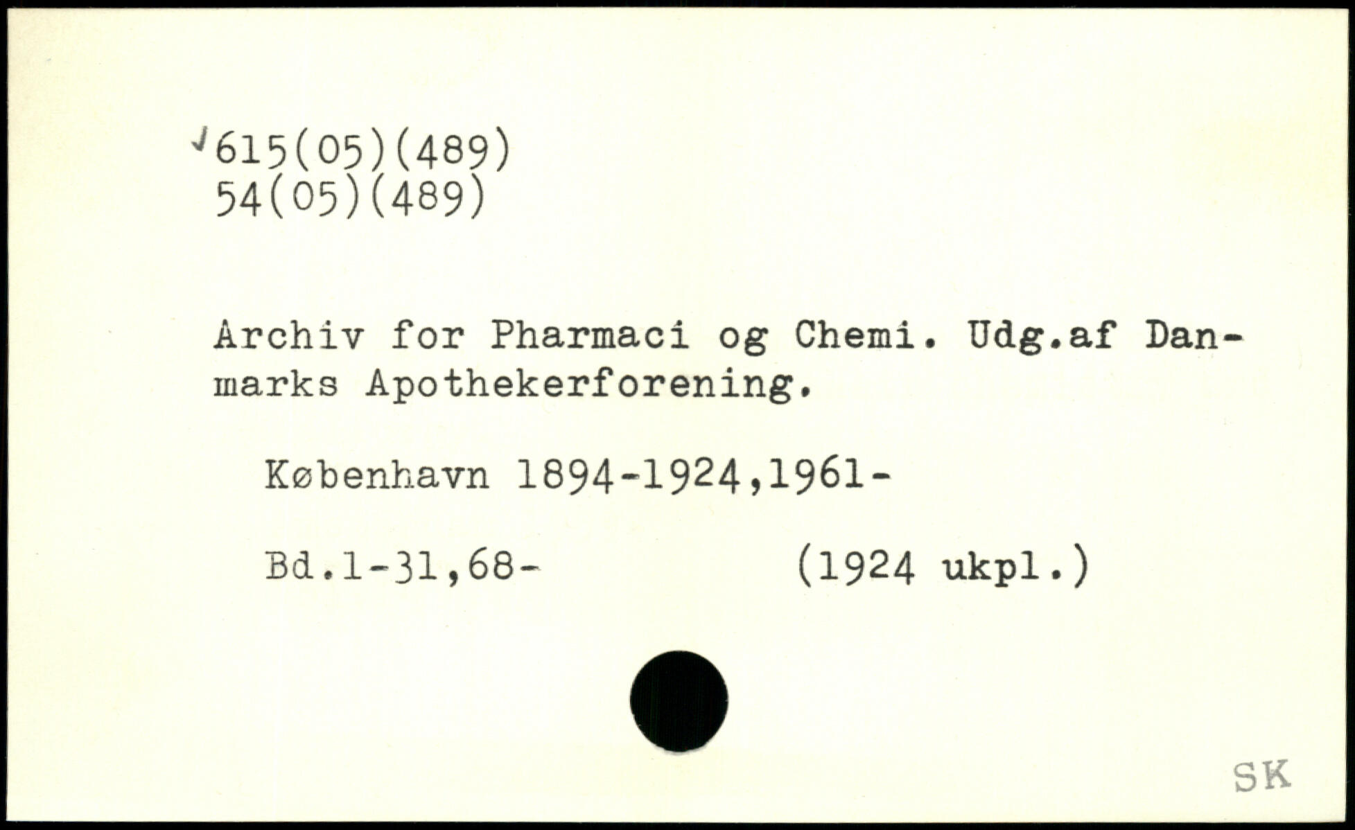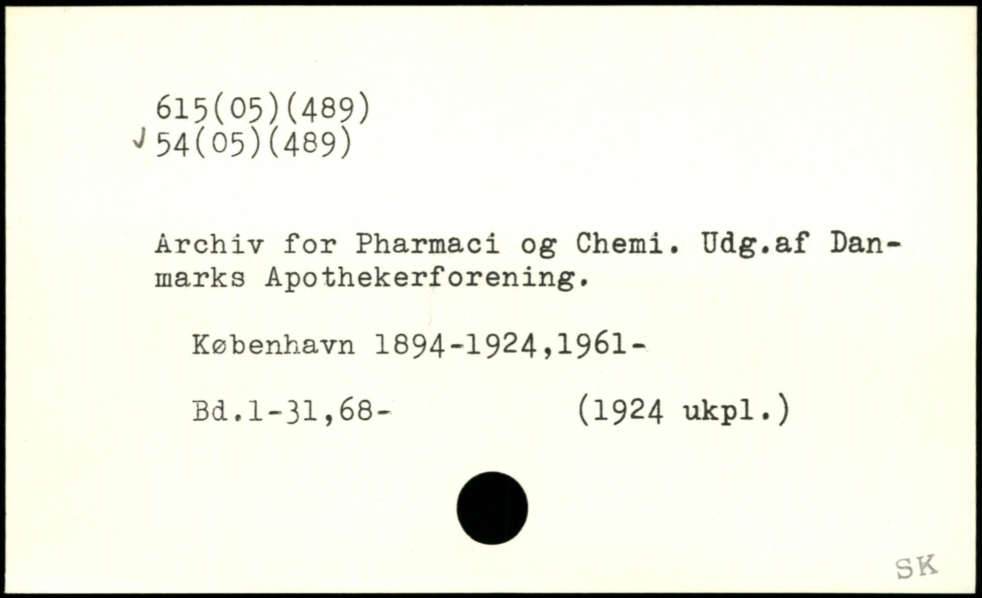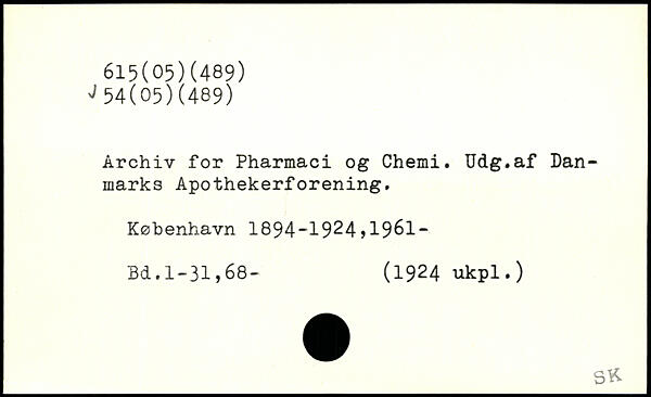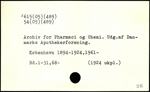 Archiv for Pharmaci og Chemi. Udg.af Danmarks Apothekerforening.