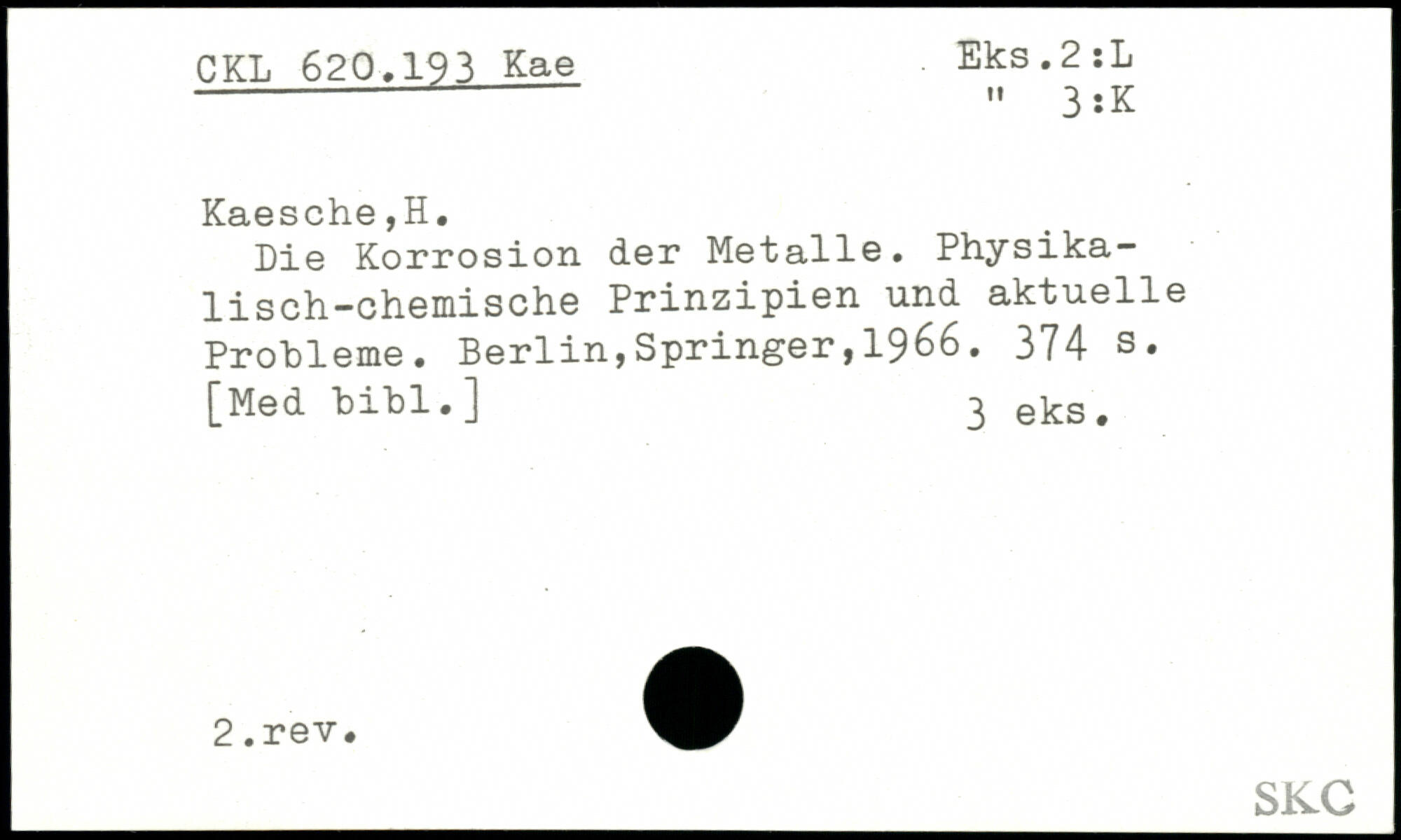 Die Korrosion der Metalle. Physikalisch-chemische Prinzipien und aktuelle Probleme.