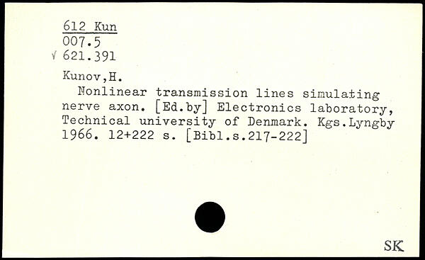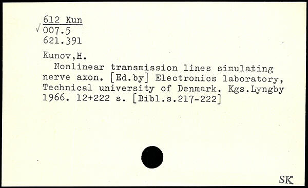 Nonlinear transmission lines simulating nerve axon. [Ed.by] Electronics laboratory, Technical university of Denmark. Kgs.Lyngby 1966.