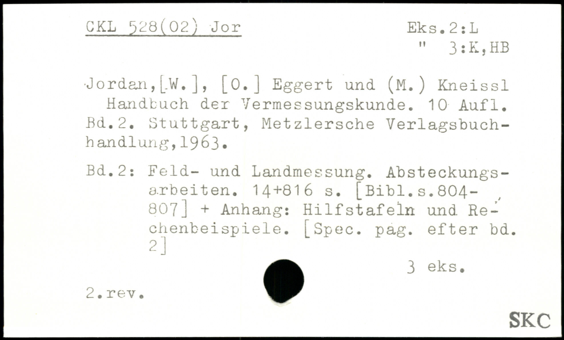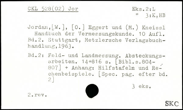 " 3:K}HB .Jordan, [.W. ] , [0. ] Eggert und (M. ) Kneissl Handtuch der Vermessungskunde.