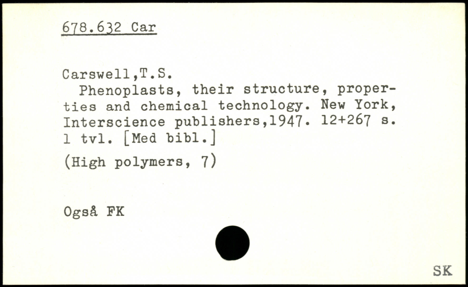 Phenoplasts, their structure, properties and chemical technology.