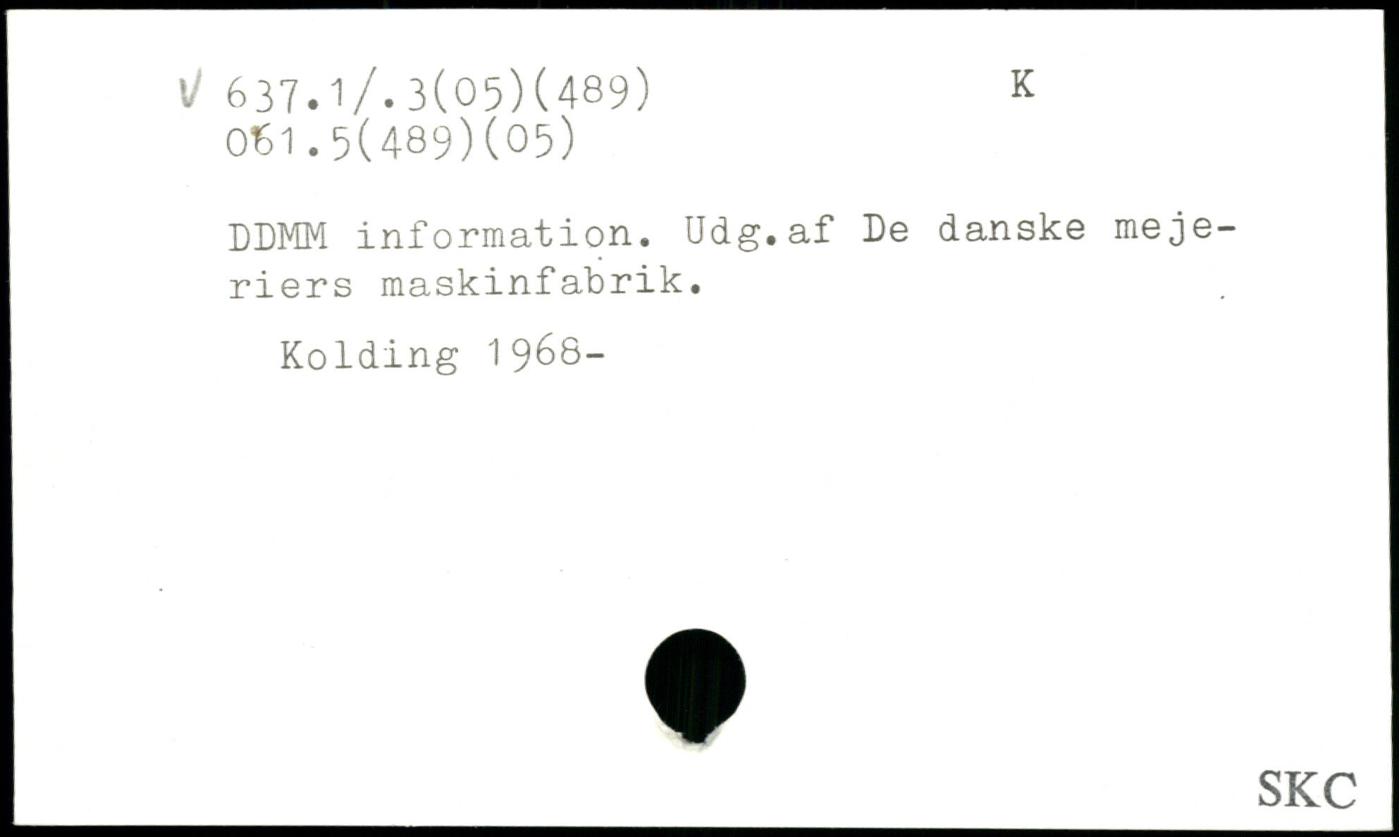 DDMM information. Udg.af De danske mejeriers maskinfabrik. Kolding 1968-