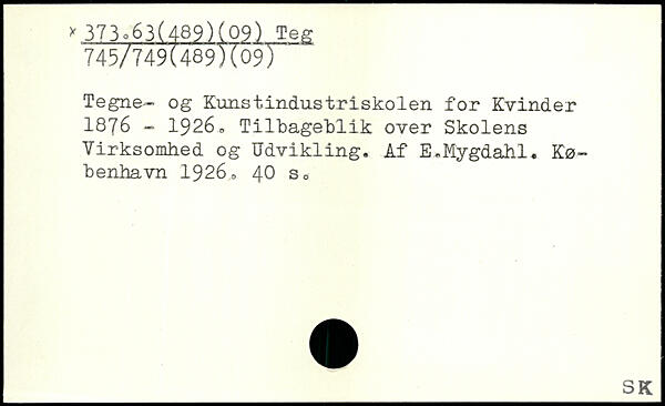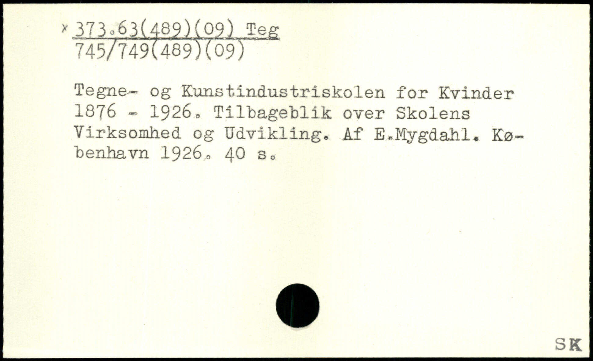 Tegne- og Kunstindustriskolen for Kvinder 1876 - 19260 Tilbageblik over Skolens Virksomhed og Udvikling. Af E.Mygdahl.