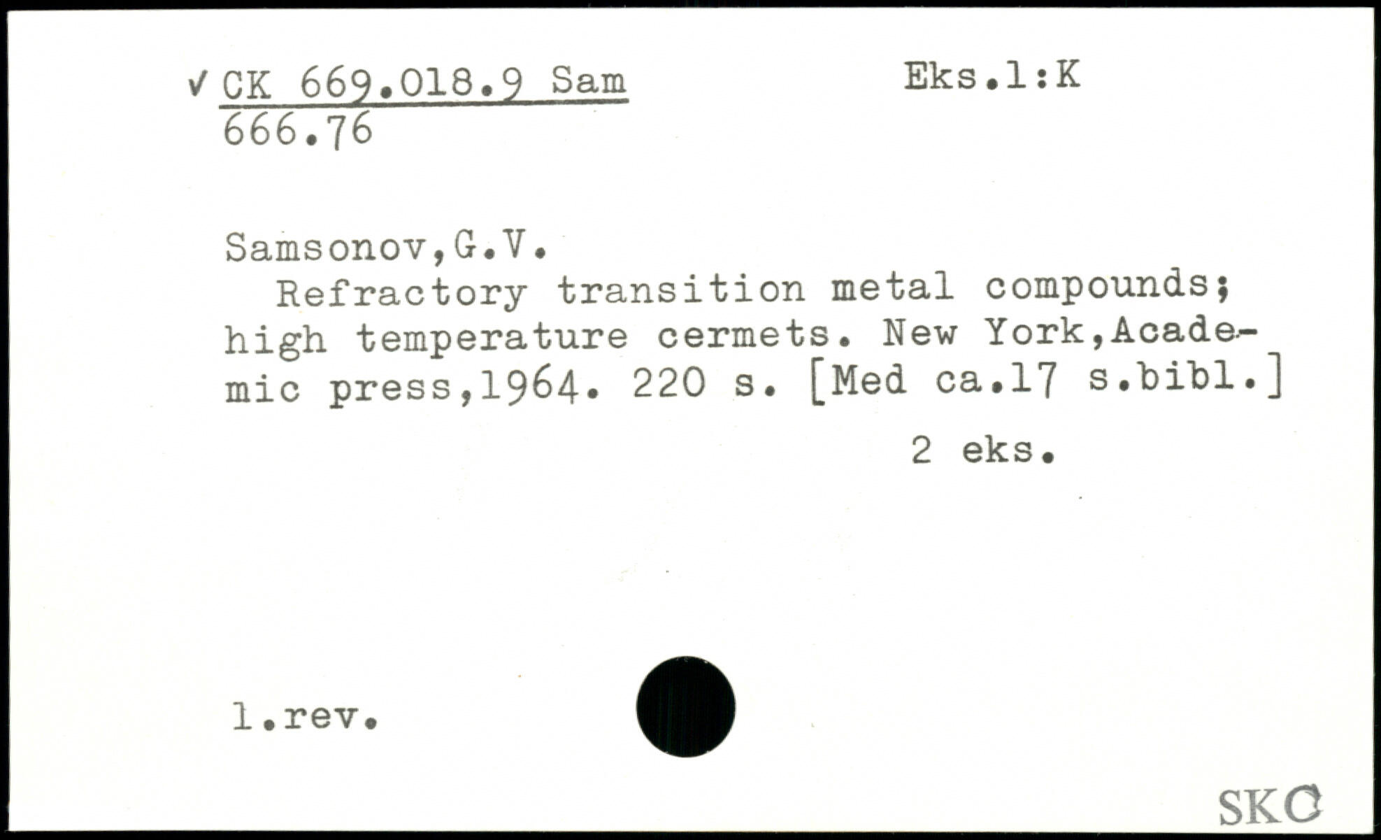Refractory transition metal compounds; high temperature cermets. New York,Acade.-mic press,1964