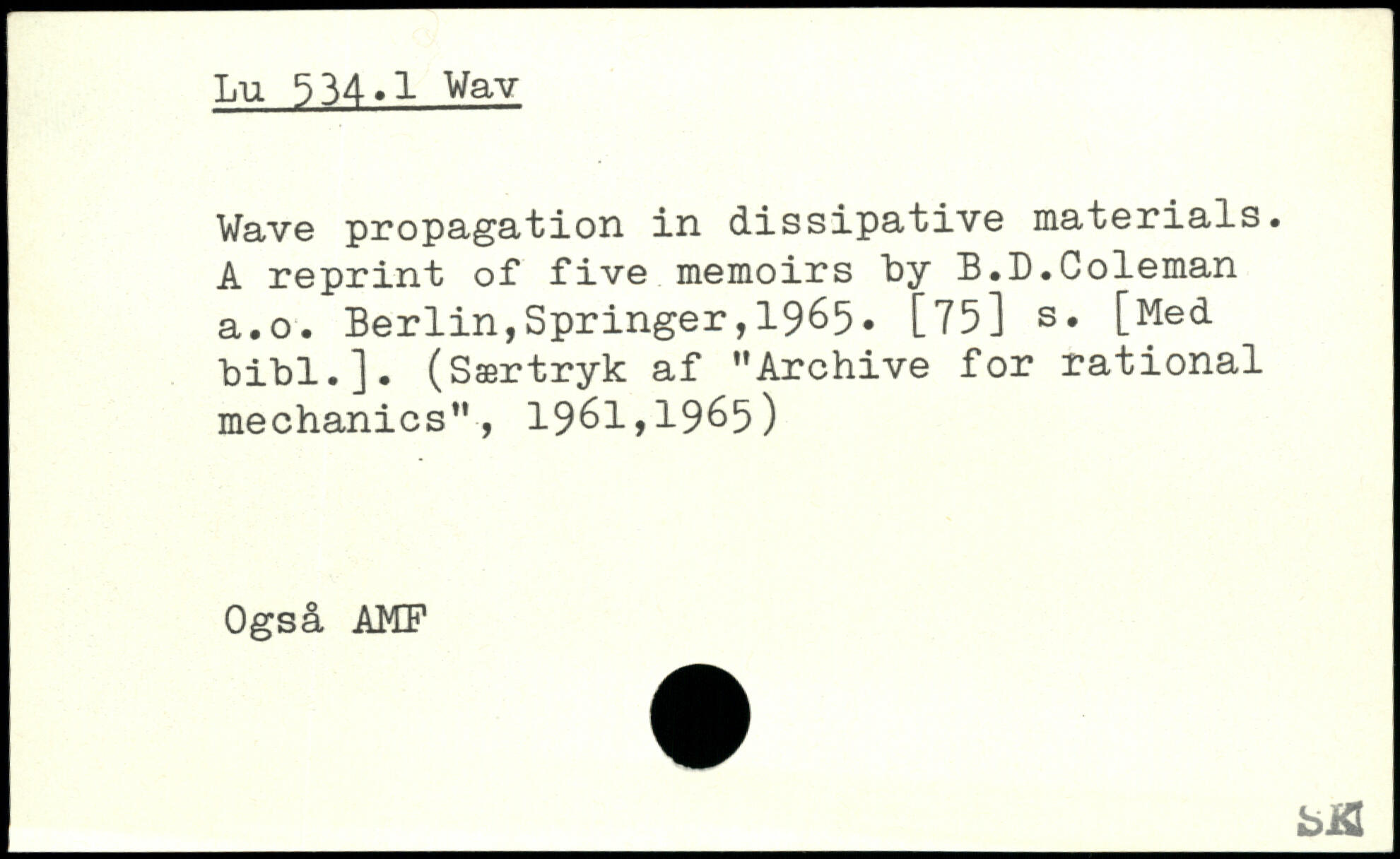 Wave propagation in dissipative materials. A reprint of1 five memoirs by B.D.Coleman a.o.