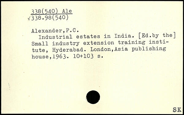 Industrial estates in India. [Ed.by thej Small industry extension training institute, Hyderabad.