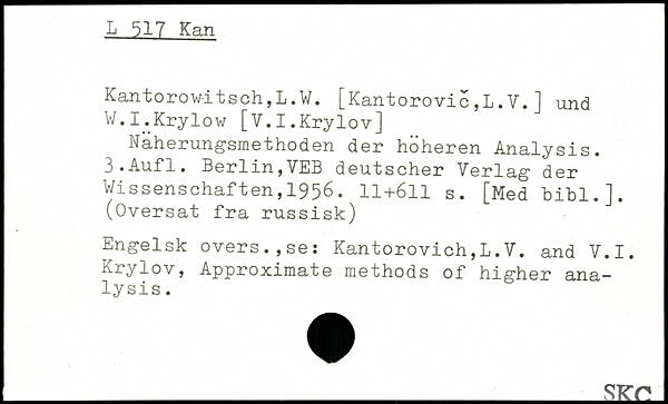 Kantorowitsch,L.W. [Kantorovic,L.V.] und W.I.Krylow [V.I.Krylov] Näherungsmethoden der höheren Analysis.