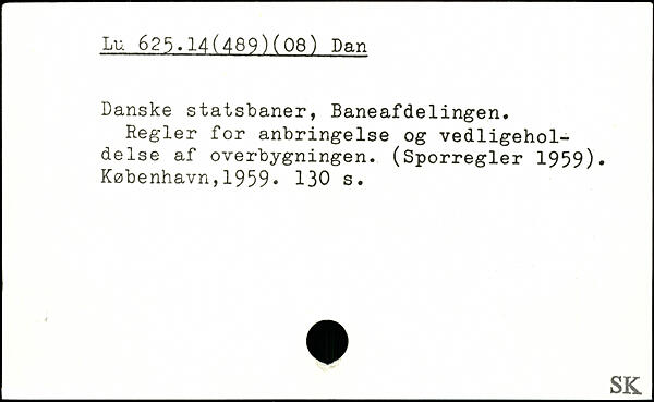 Danske statsbaner, Baneafdelingen, Regler for anbringelse og vedligeholdelse af overbygningen. (Sporregler 1959). København,1959-