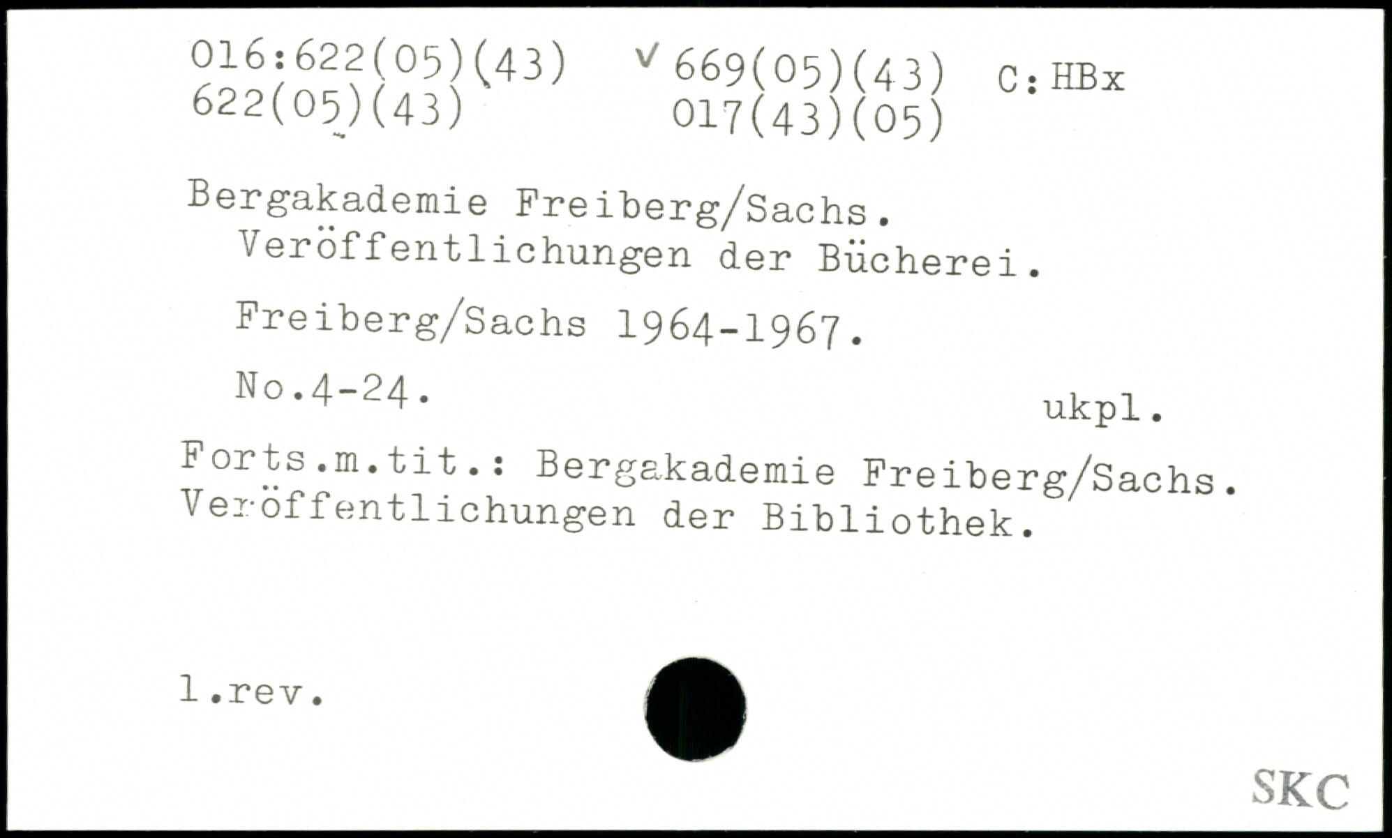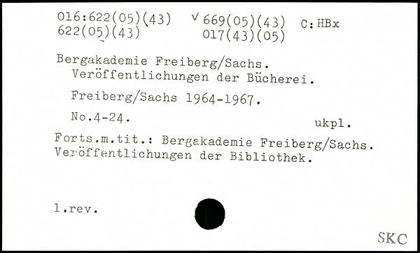 Bergakademie Freiberg/Sachs. Veröffentlichungen der Bücherei. Freiberg/Sachs 1964-1967. N..4-24. ukpl. Forts.m.tit.s Bergakademie Freiberg/Sachs. Veröffentlichungen der Bibliothek. 1. SRC