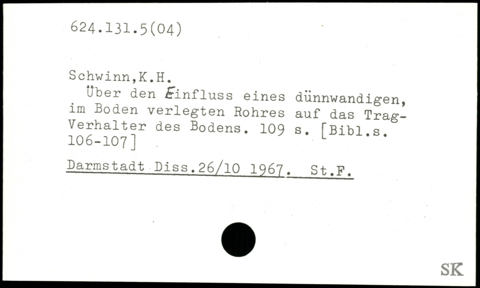 liber den Einfluss eines dünnwandigen, im Boden verlegten Rohres auf das Trag- 106h107]r dGS B.denS’