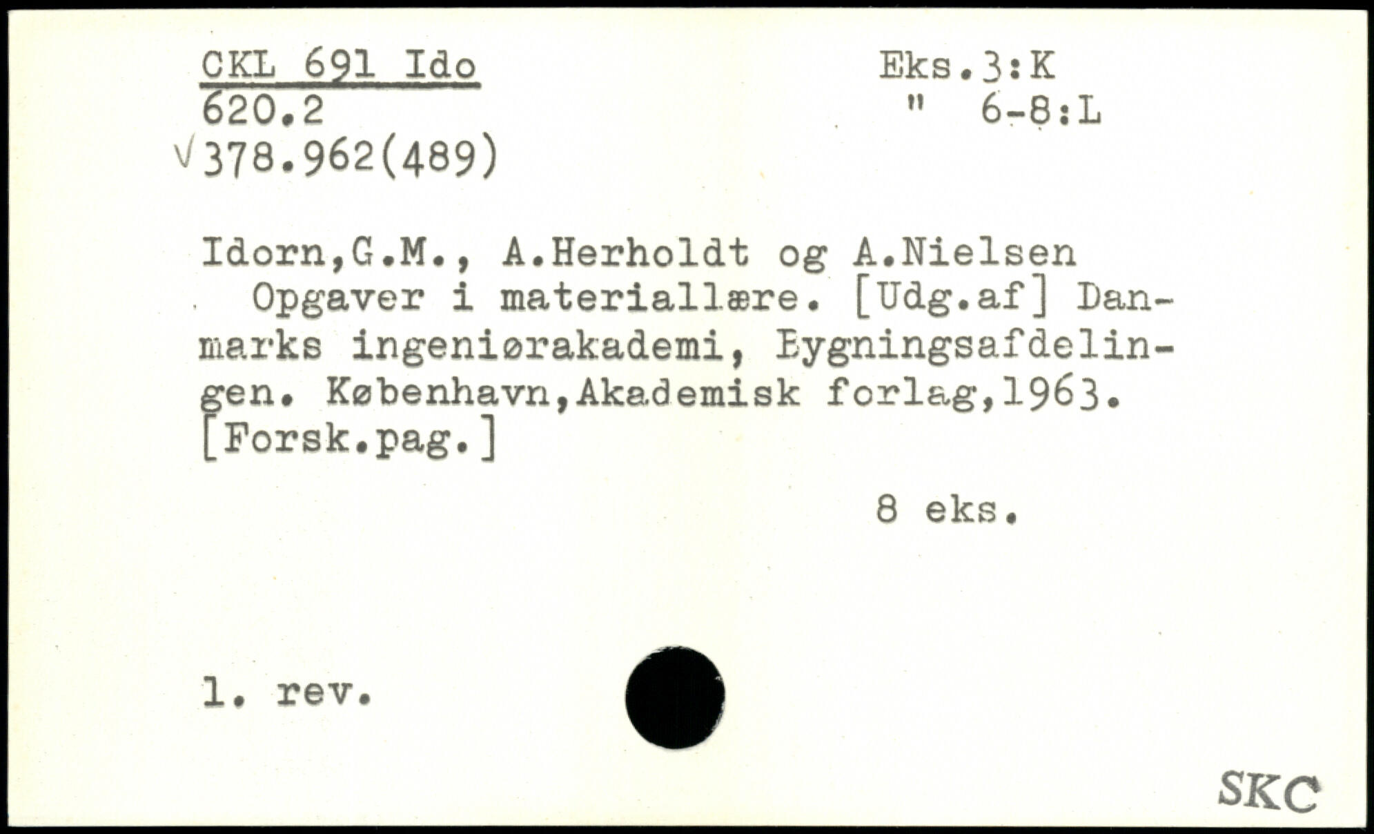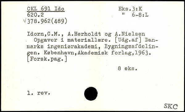 Idorn,G.M., Å.Herholdt og A.Nielsen Opgaver i materiallære. [Udg.af] Danmarks ingeniørakademi, Bygningsafdelingen.