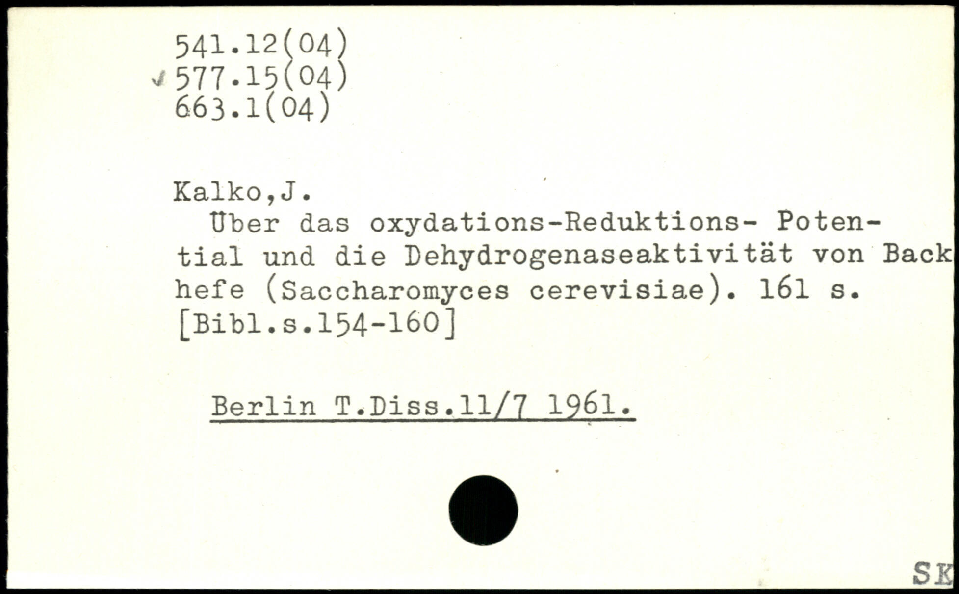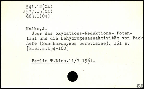 Uber das oxydations-Reduktions- Potential und die Dehydrogenaseaktivitat von Back hefe (Saccharomyces cerevisiae). l6l s.