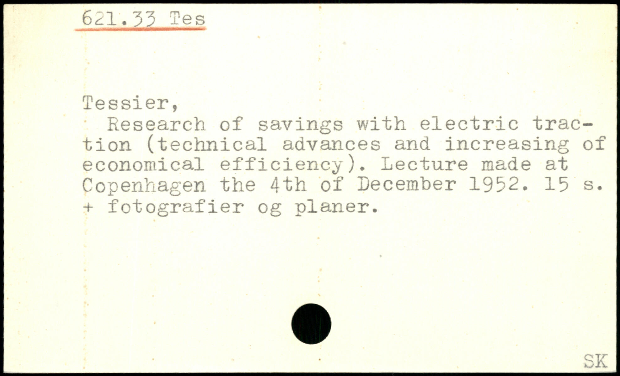 Research of savings with electric traction (technical advances and increasing of economical efficiency). Lecture made at Copenhagen the 4th of December 1952.