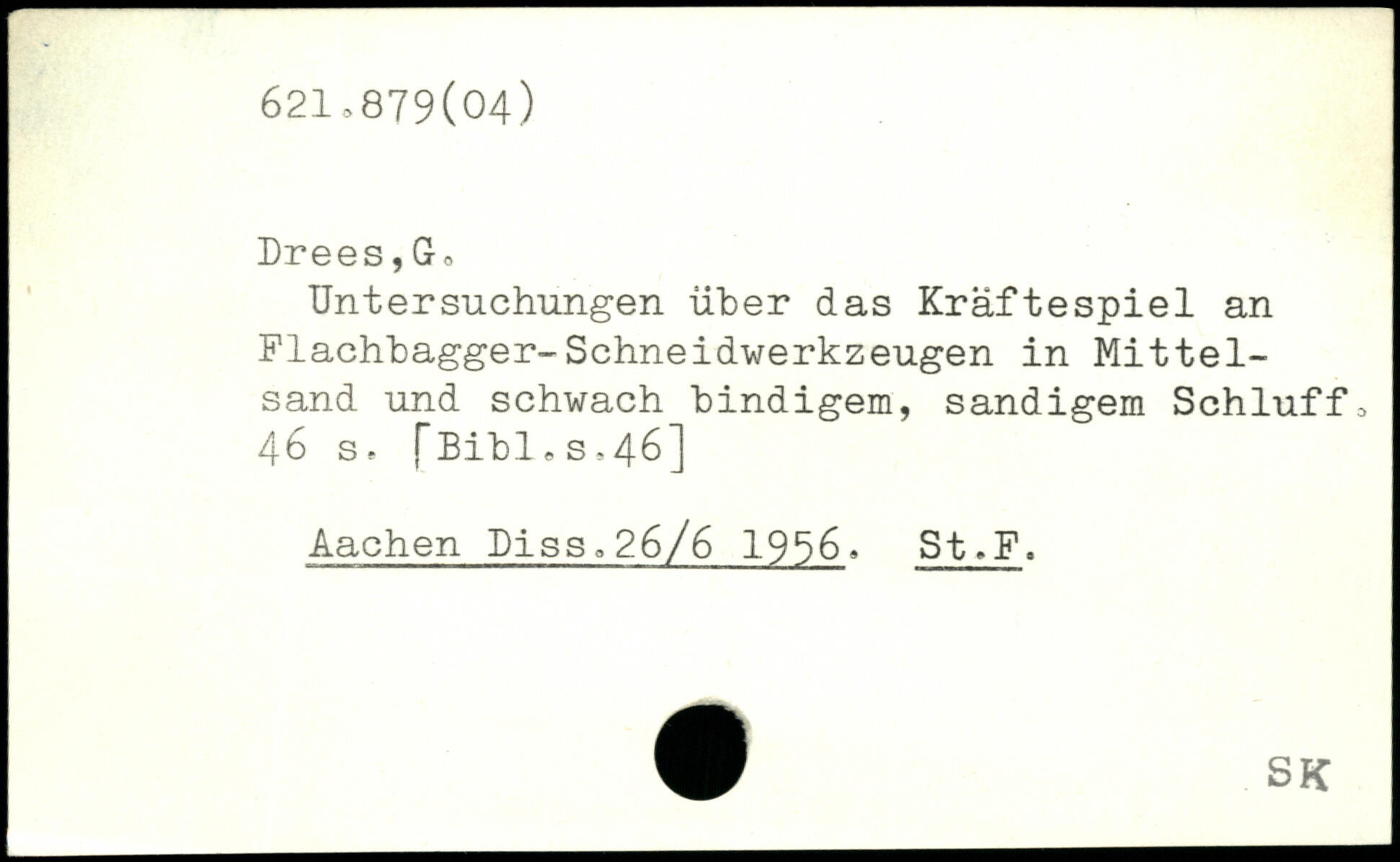 Untersuchungen über das Kräftespiel an Flachbagger-Schneidwerkzeugen in Mittelsand und schwach bindigem, sandigem Schluff