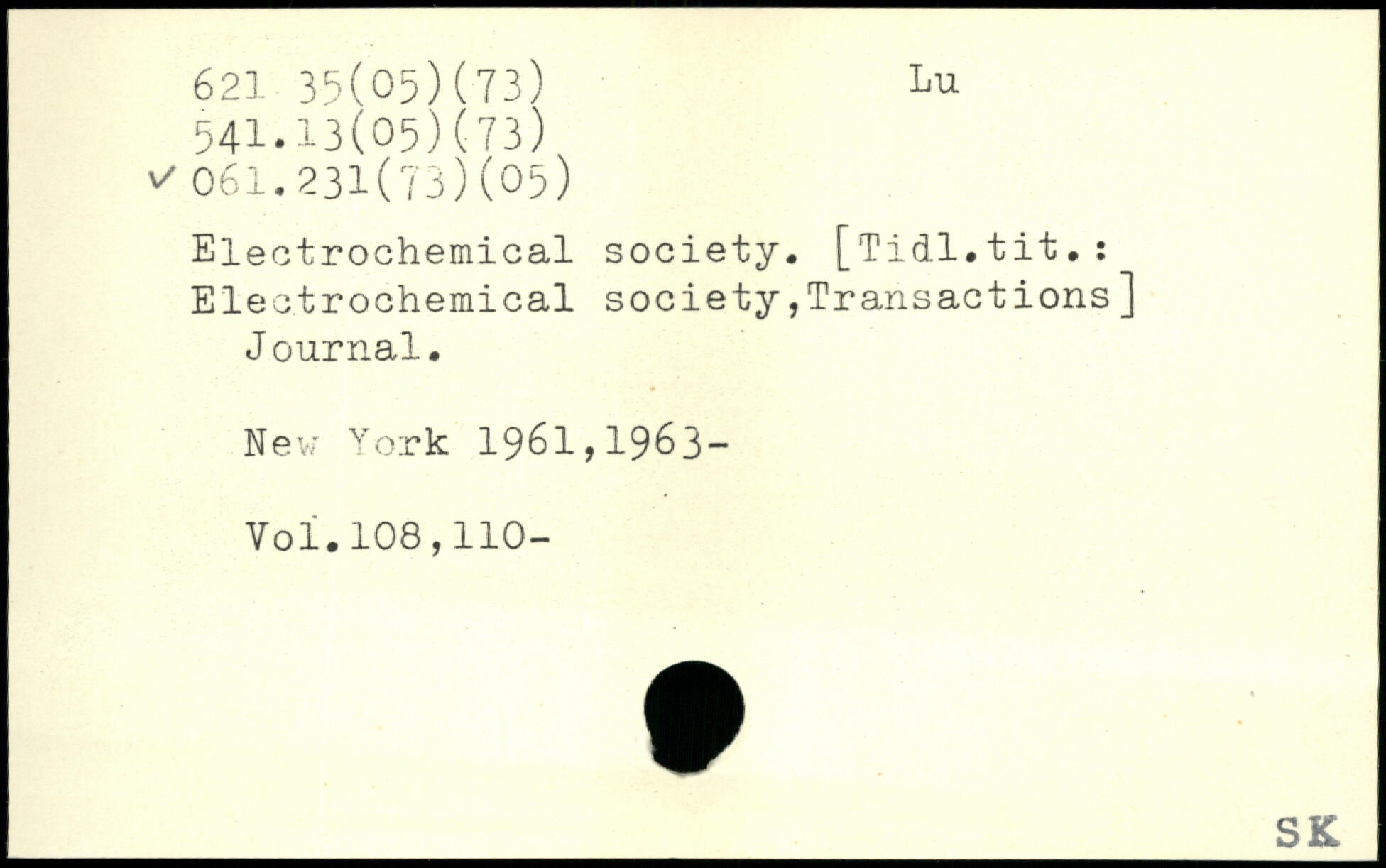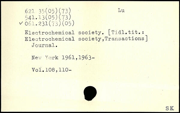 Electrochemical society. [Tidl.tit.: Electrochemical society.Transactions] J ournal. Nev; York 1961,1963-