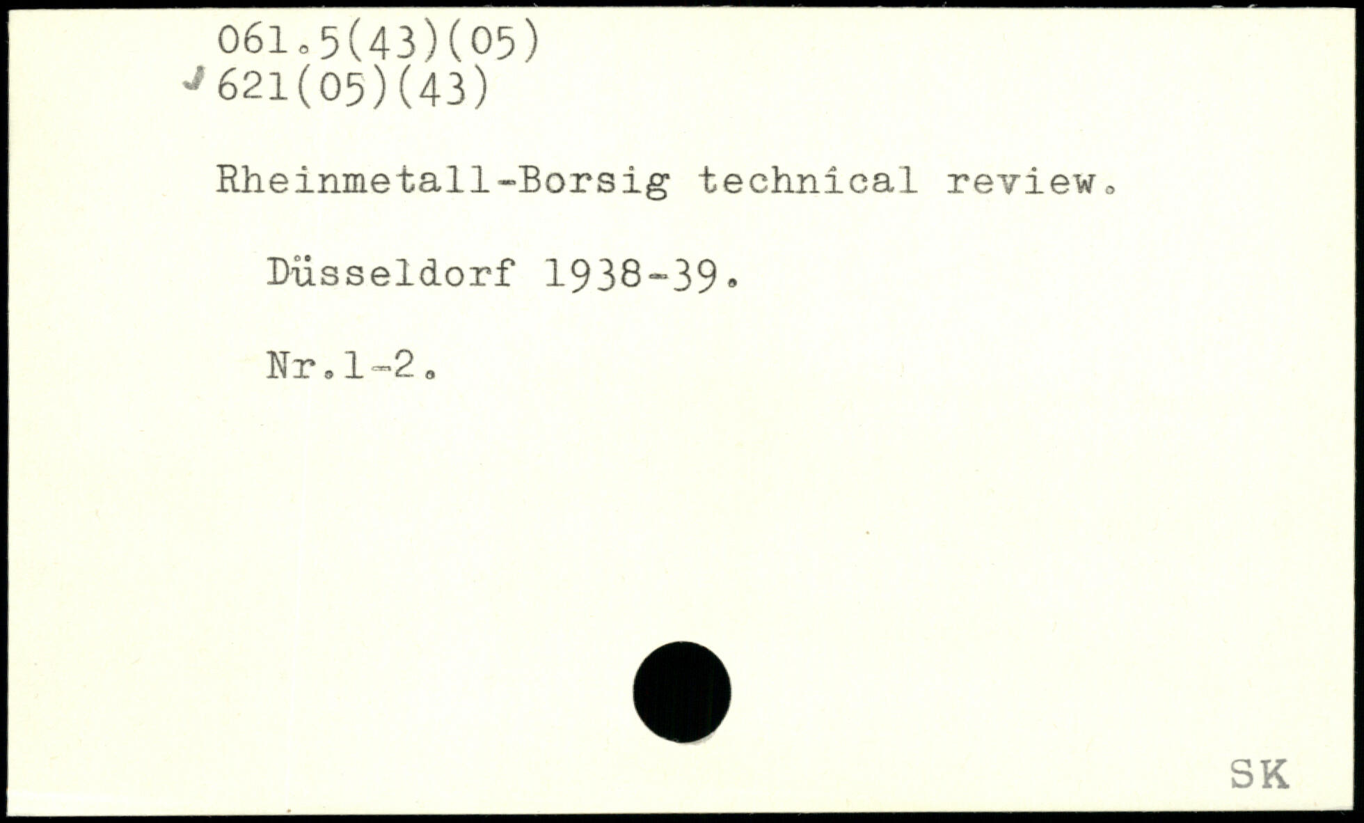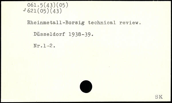 Rheinmetall-Borsig technical review., Düsseldorf 1938-39, Nr.1-2.