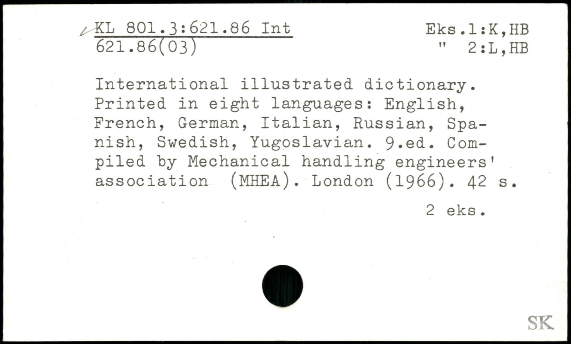 International illustrated dictionary. Printed in eight languages: English, French, German, Italian, Russian, Spanish, Swedish, Yugoslavian.