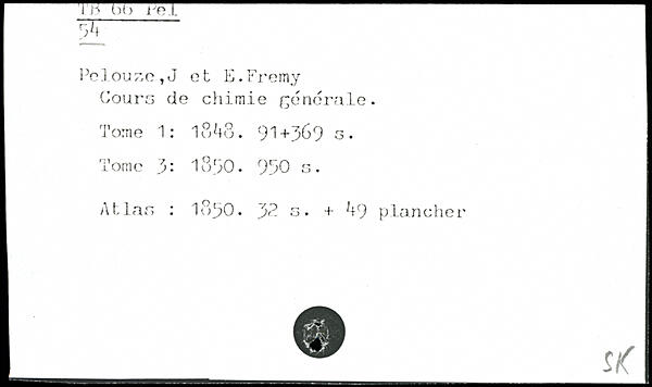 Coure de chimie générale. Tome 1: 1838. 91+3&9 g. Tome 3: 1830.