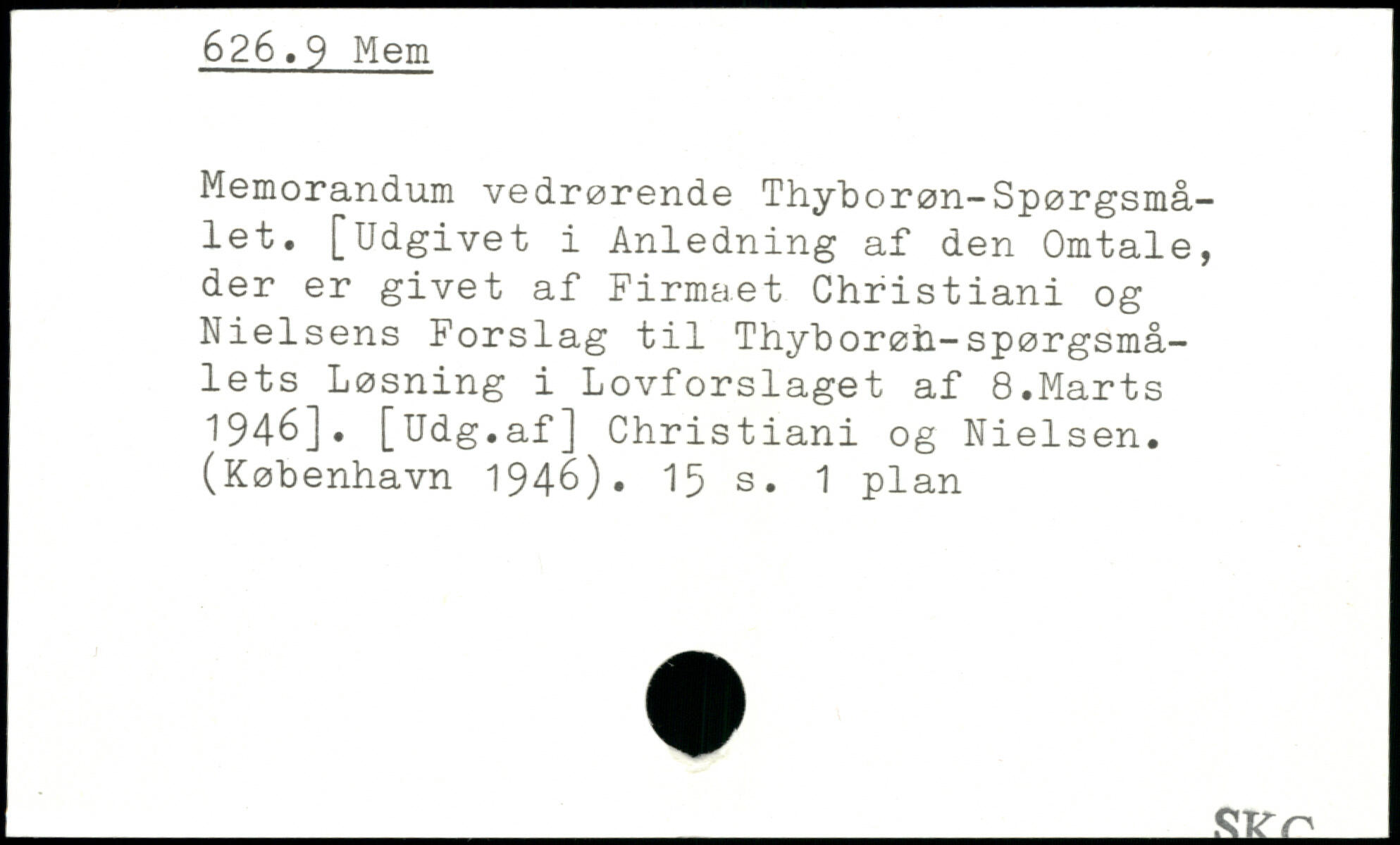 Memorandum vedrørende Thyborøn-Spørgsmålet. [Udgivet i Anledning af den Omtale, der er givet af Firmaet Christiani og Nielsens Forslag til Thyborøn-spørgsmålets Løsning i Lovforslaget af 8.Marts 1946].