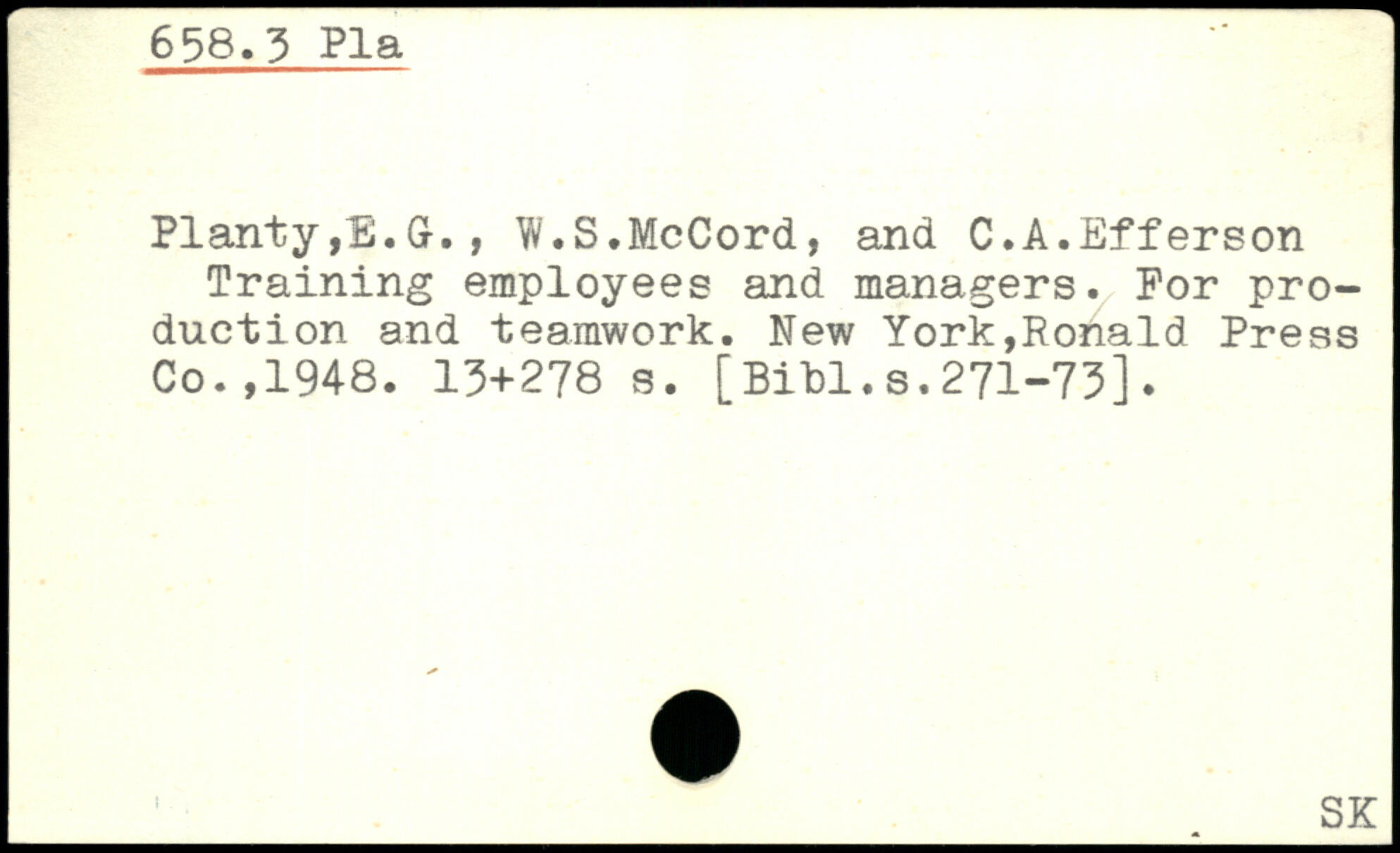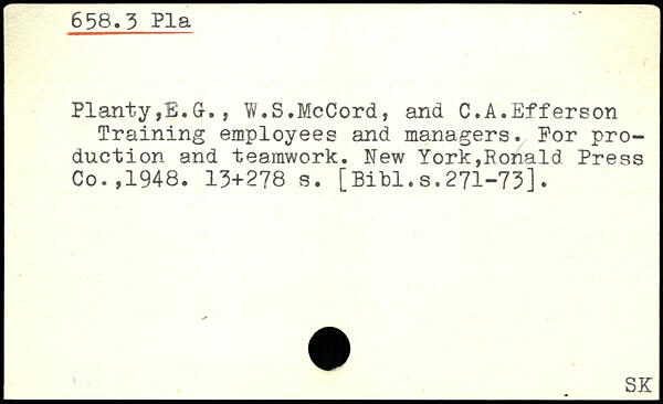 Planty,£.G-, , W.S.McCord, and C.A.Efferson Training employees and managers. For production and teamwork.