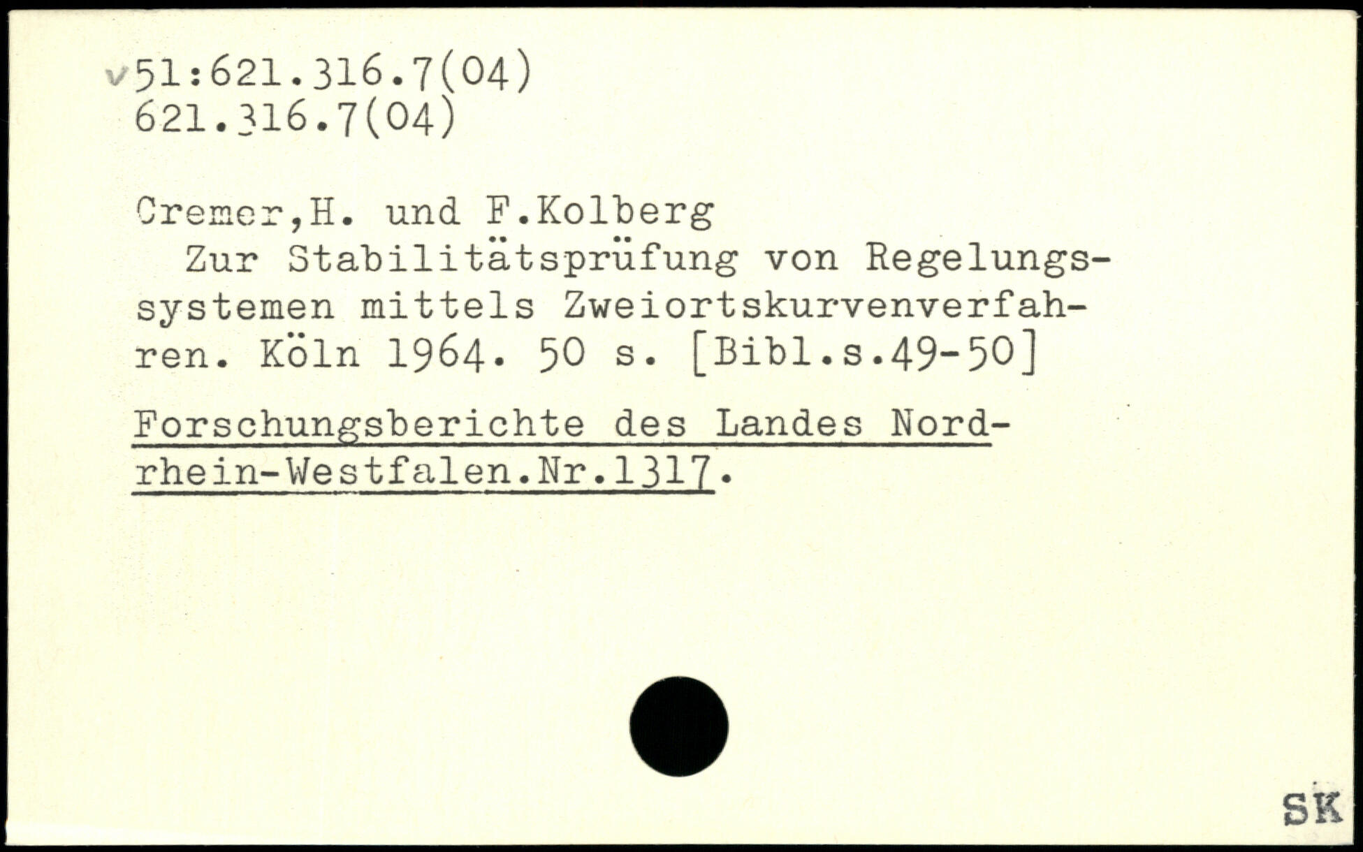 Zur Stabilitätspriifung von Regelungssystemen mittels Zweiortskurvenverfahren.