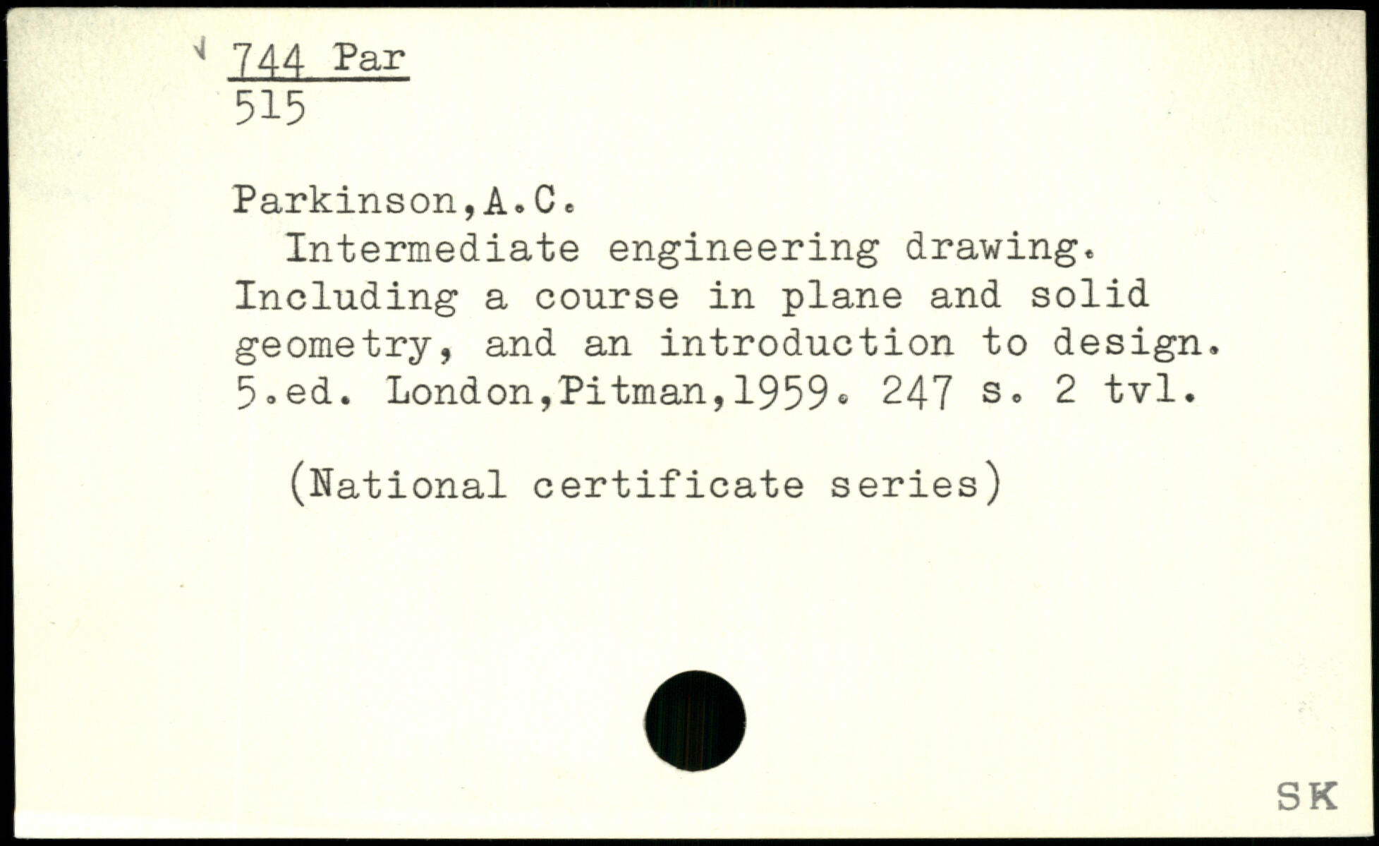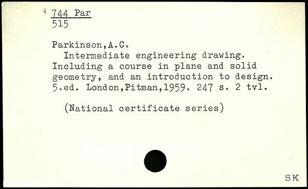 Parkinson, A. C e Intermediate engineering drawing. Including a course in plane and solid geometry, and an introduction to design.