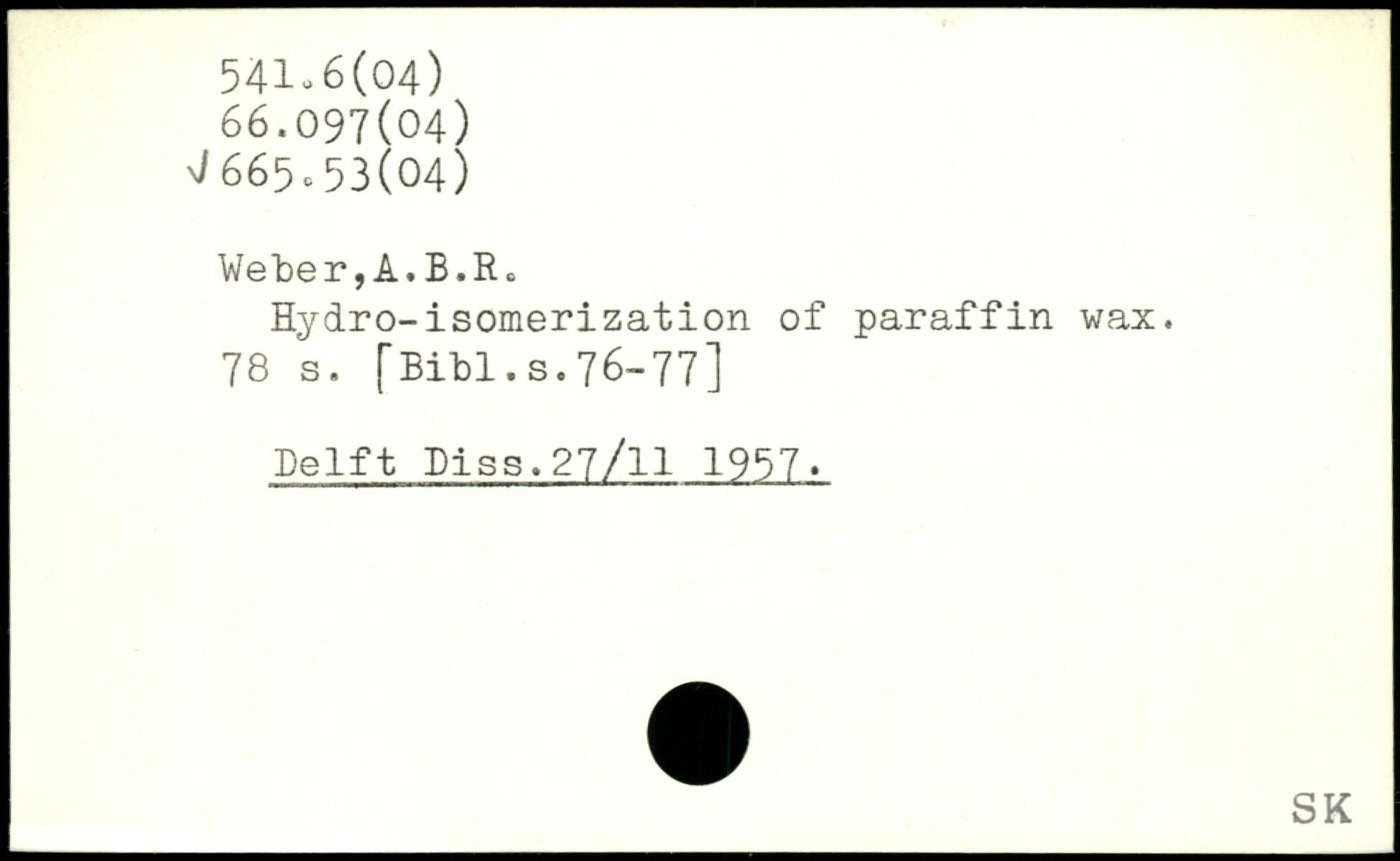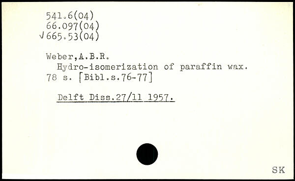 Weber,A.B.Re Hydro-isomerization of paraffin wax.