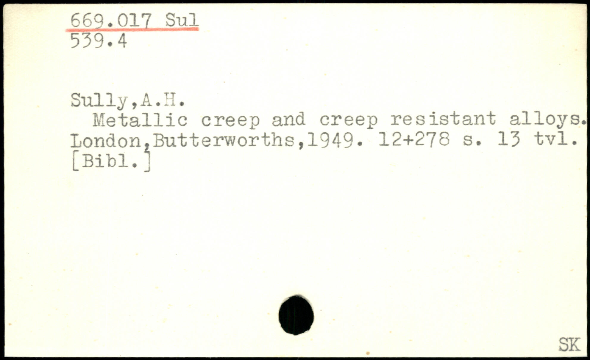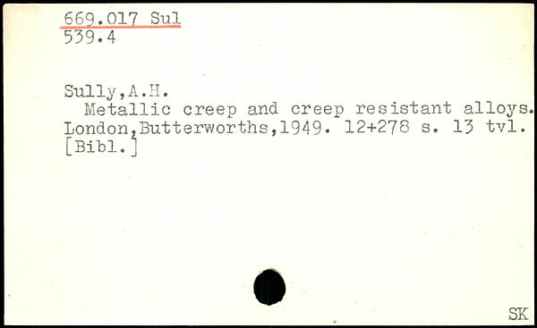Metallic creep and creep résistant alloys.
