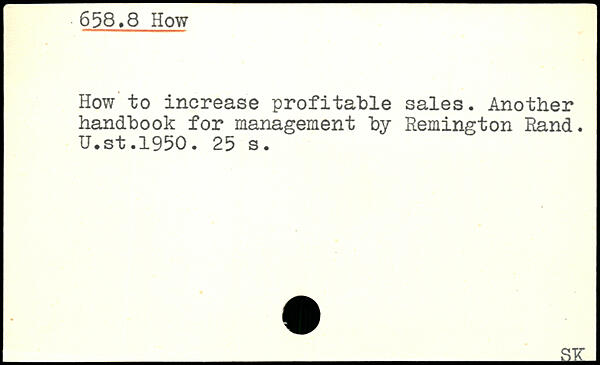 How to increase profitable sales. Another handbook for management by Remington Rand. U.st.1950.