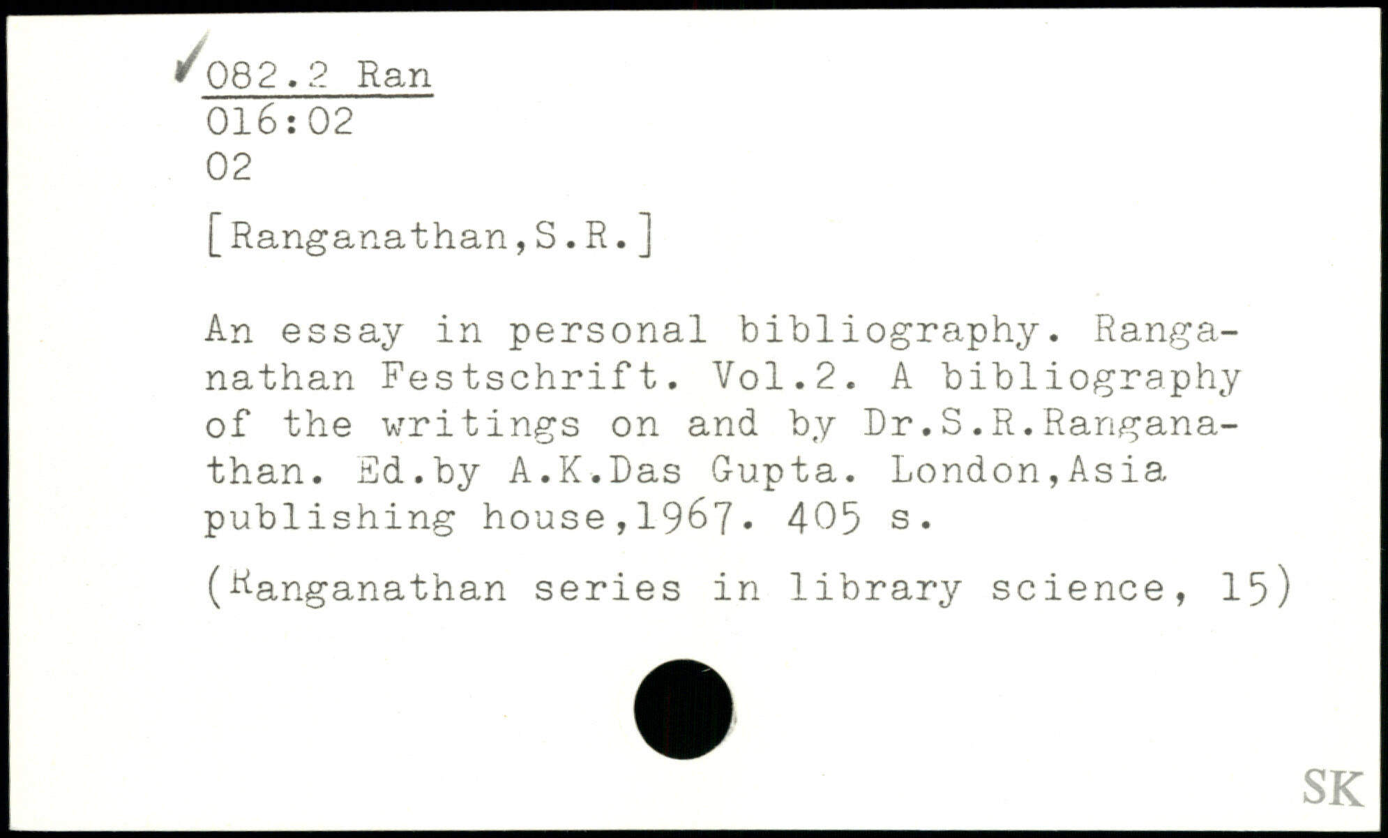 [Ranganathan, S. R. j An essay in personal bibliography. Ranga-nathan Festschrift.