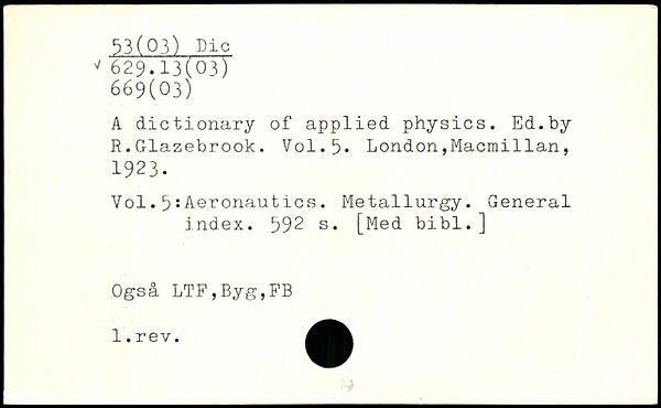 UDK: 53(03) Die, 629.13(03), 669(03)