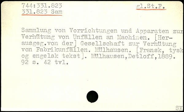 Sammlung von Vorrichtungen -und Apparaten zui Verhütung von Unfällen an Mach inen. [Heraus ge g. von der] Gesellschaft zur Verhütung von Fabrikantallen. Mülhausen. [Fransk, tvsl og engelsk tekstj.