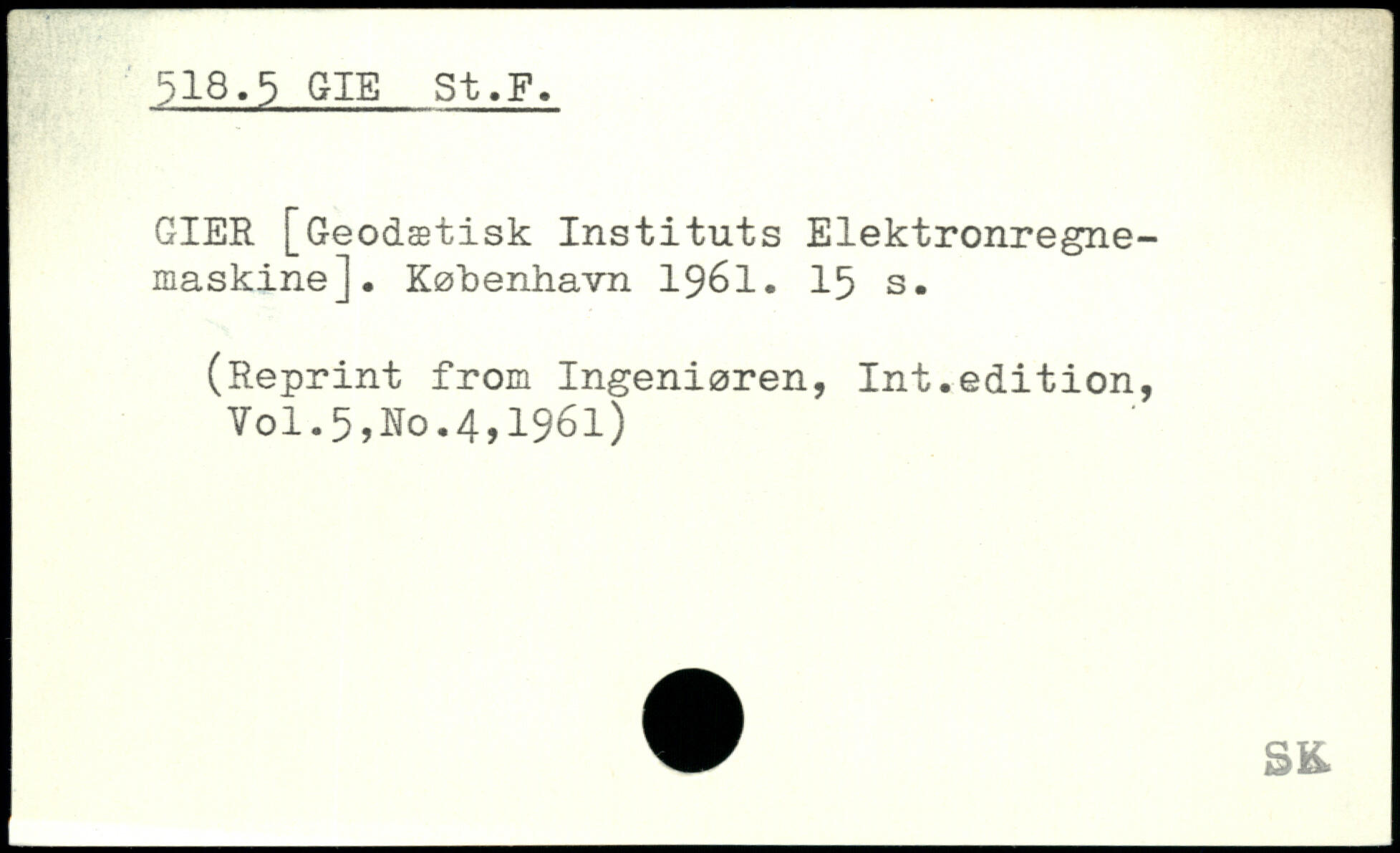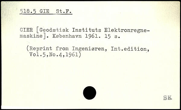 GIER [Geodætisk Instituts Elektronregnemaskine]. Kølenhavn 1961.