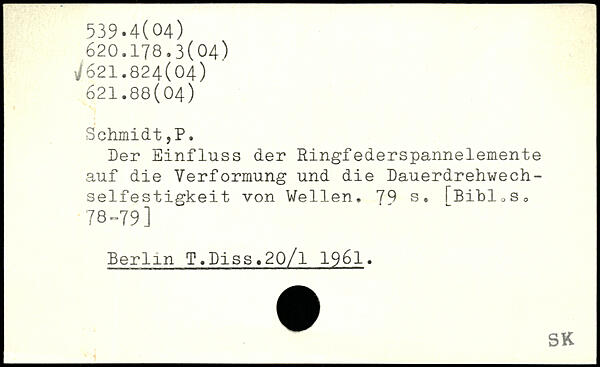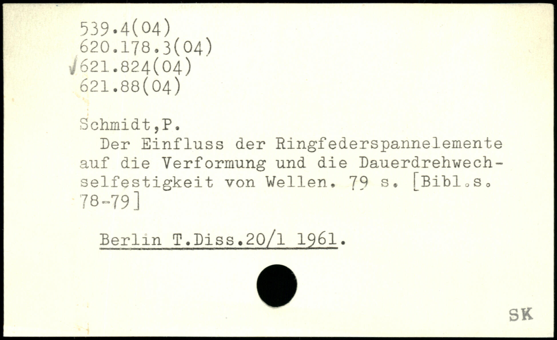 her Einfluss der Ringfederspannelemente auf die Verformung und die hauerdrehwech-selfestigkeit von Wellen.