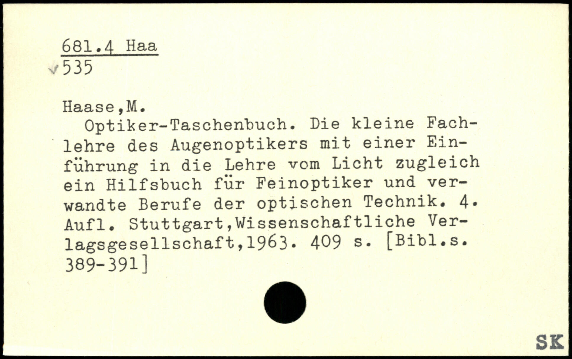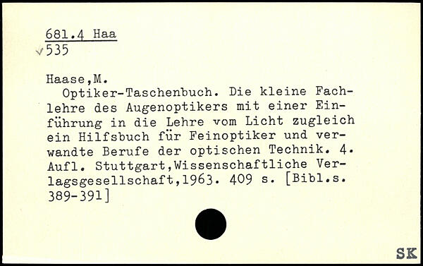 Optiker-Taschenbuch. Die kleine Fachlehre des Augenoptikers mit einer Einführung in die Lehre vom Licht zugleich ein Hilfsbuch für Feinoptiker und verwandte Berufe der optischen Technik. 4, Aufl.