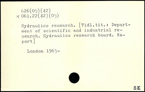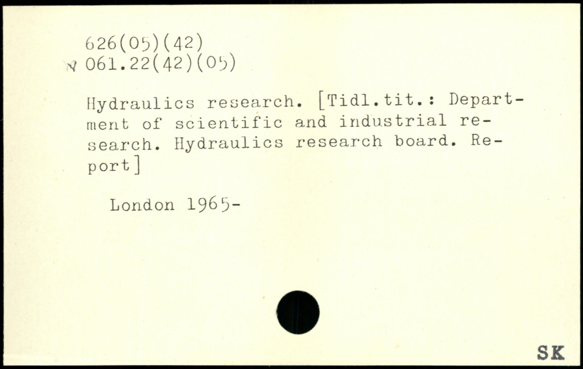 Hydraulics research. [Tidl.tit.: Department of scientific and industrial research. Hydraulics research board. Report]
